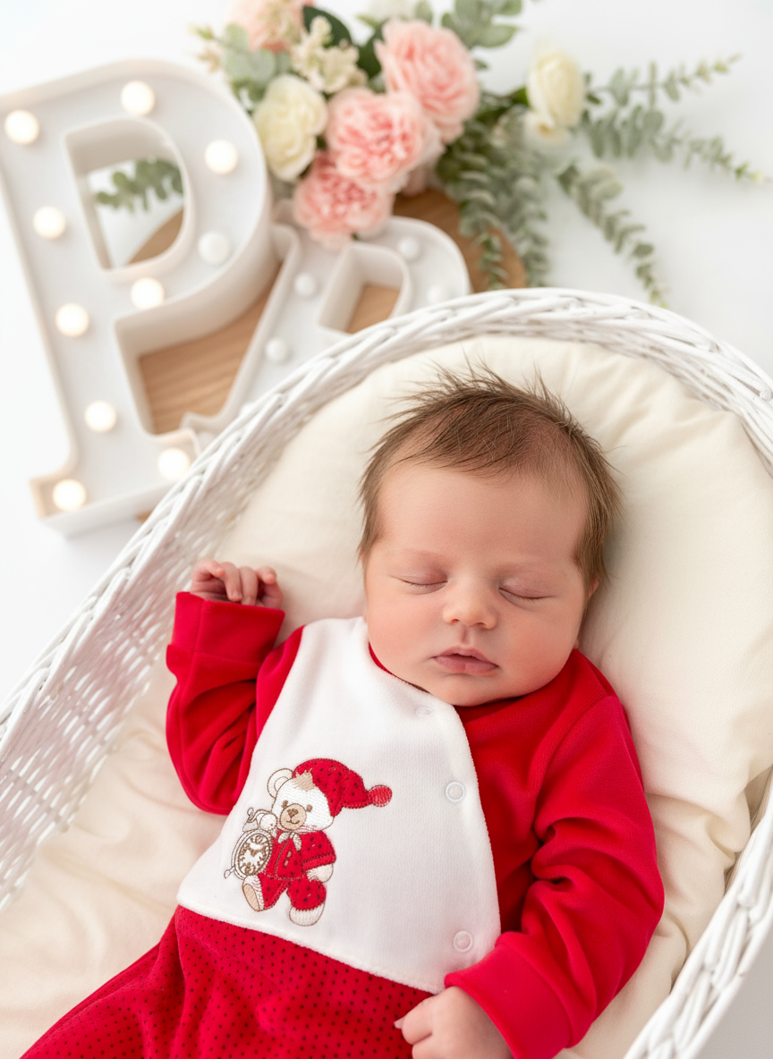 Prepare-se para derreter de ternura! Este babygrow em veludo ultra suave é uma verdadeira joia que combina charme e conforto de forma irresistível.