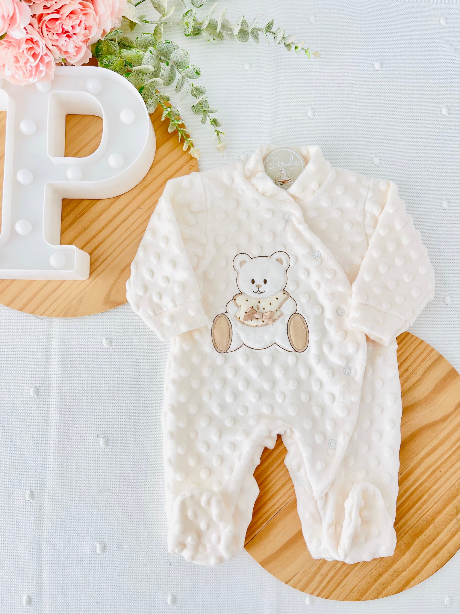 Babygrow em tecido efeito pipoca, muito fofinho e suave.
