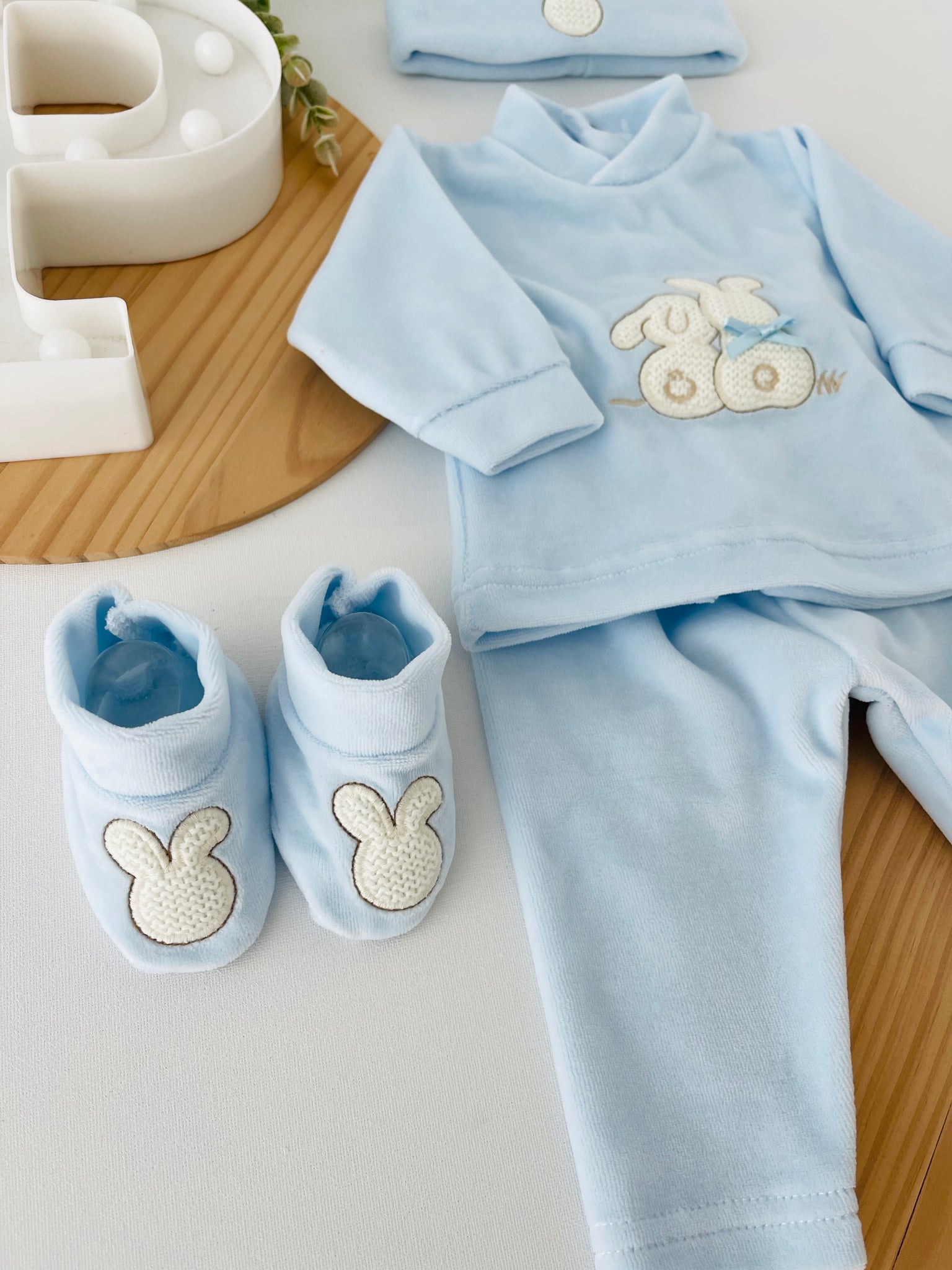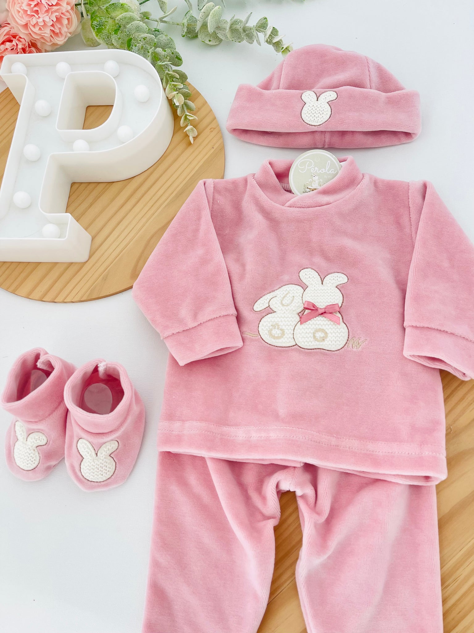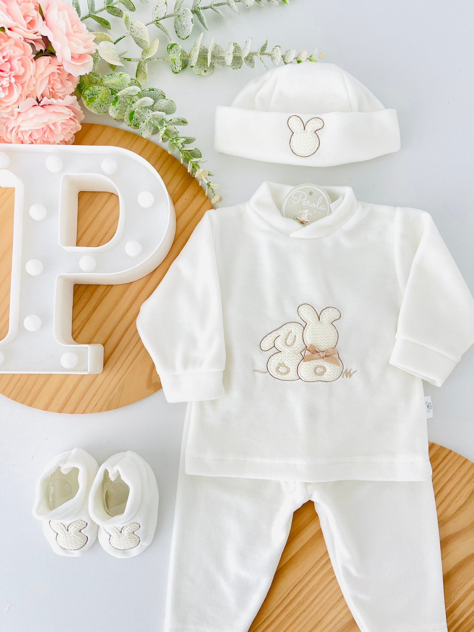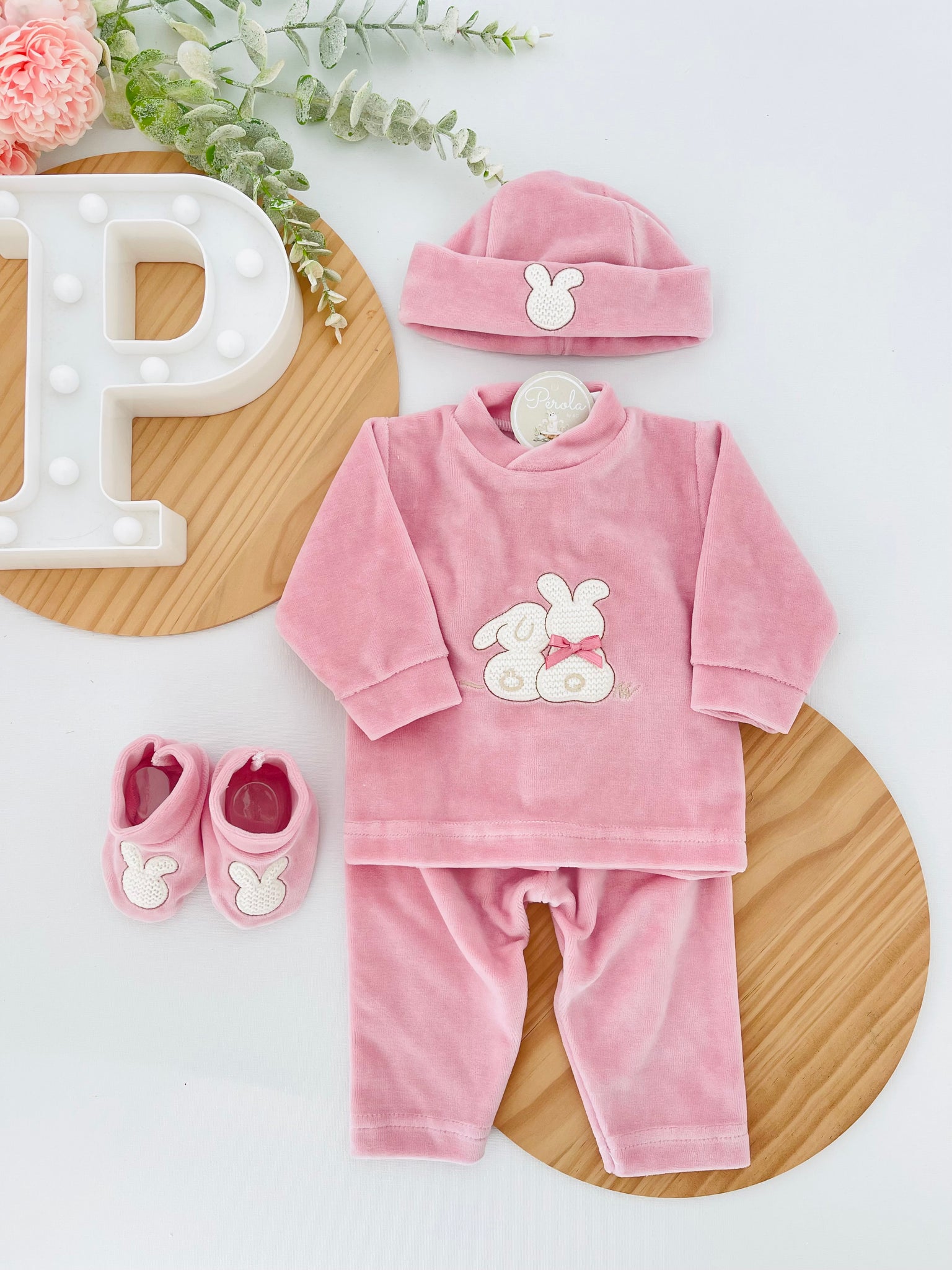 Conjunto do tema coelhinhos de 4 peças em veludo: