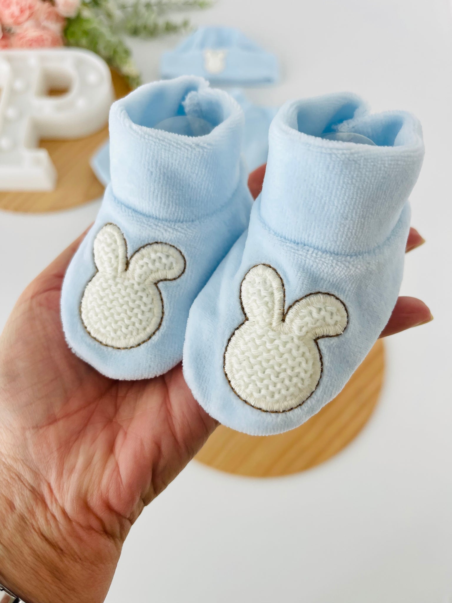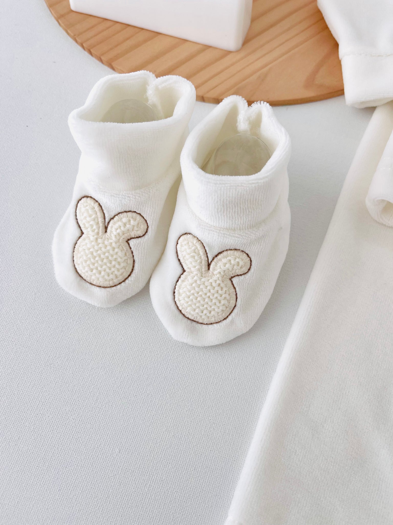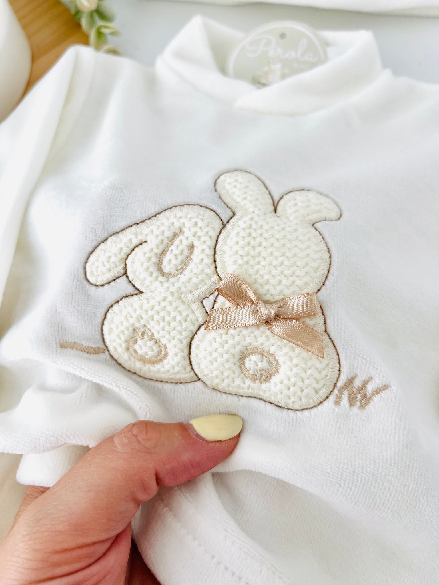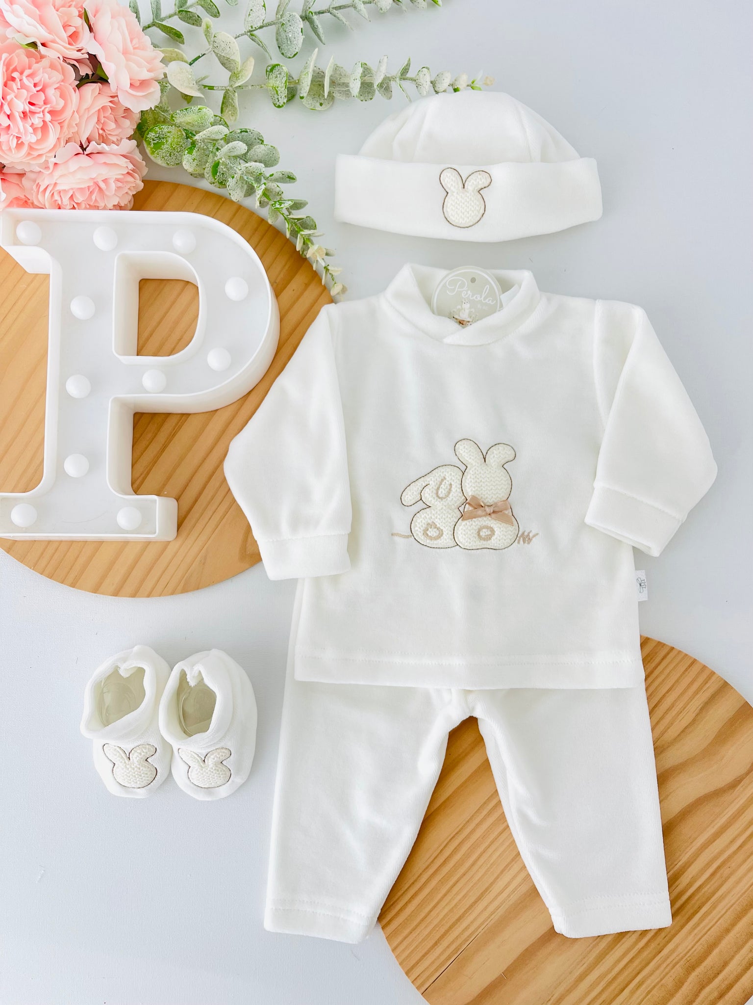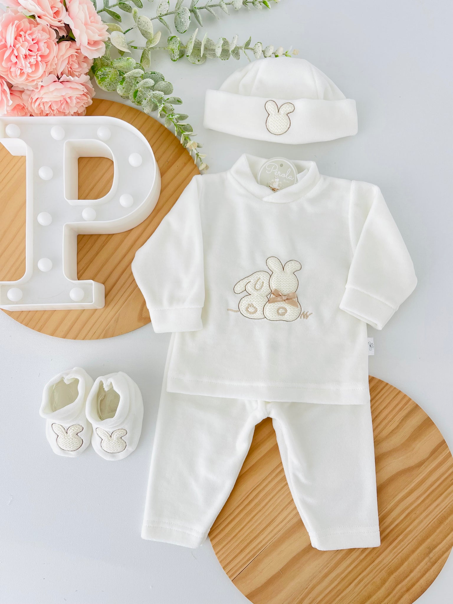 Conjunto do tema coelhinhos de 4 peças em veludo: