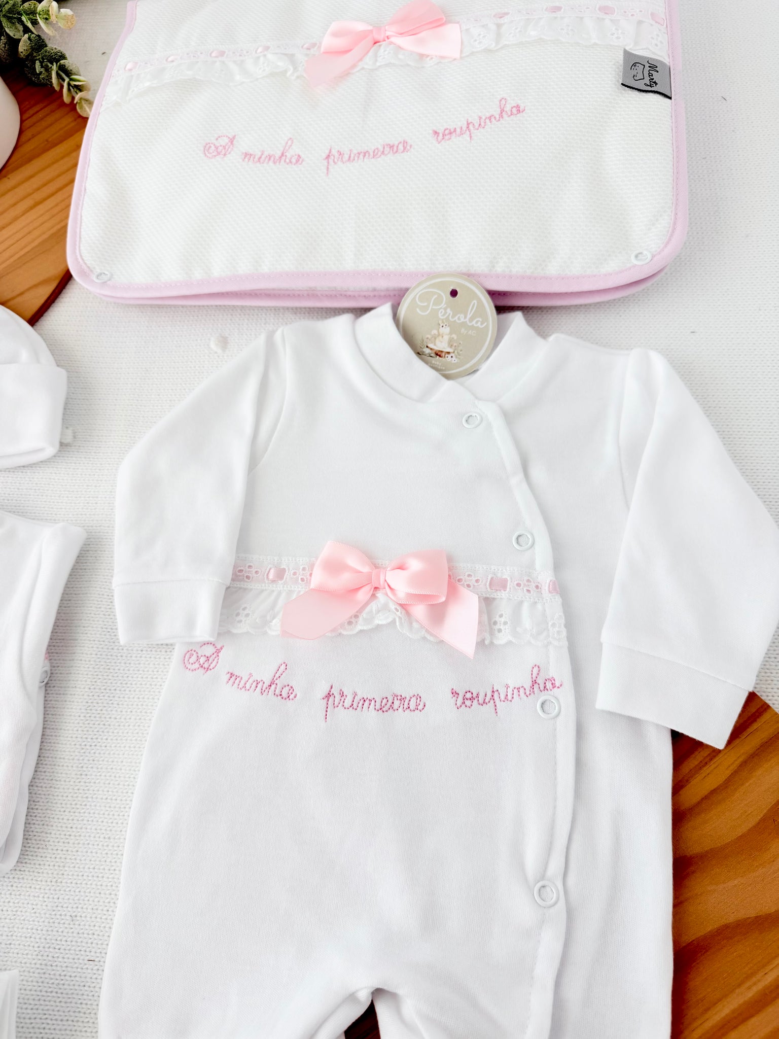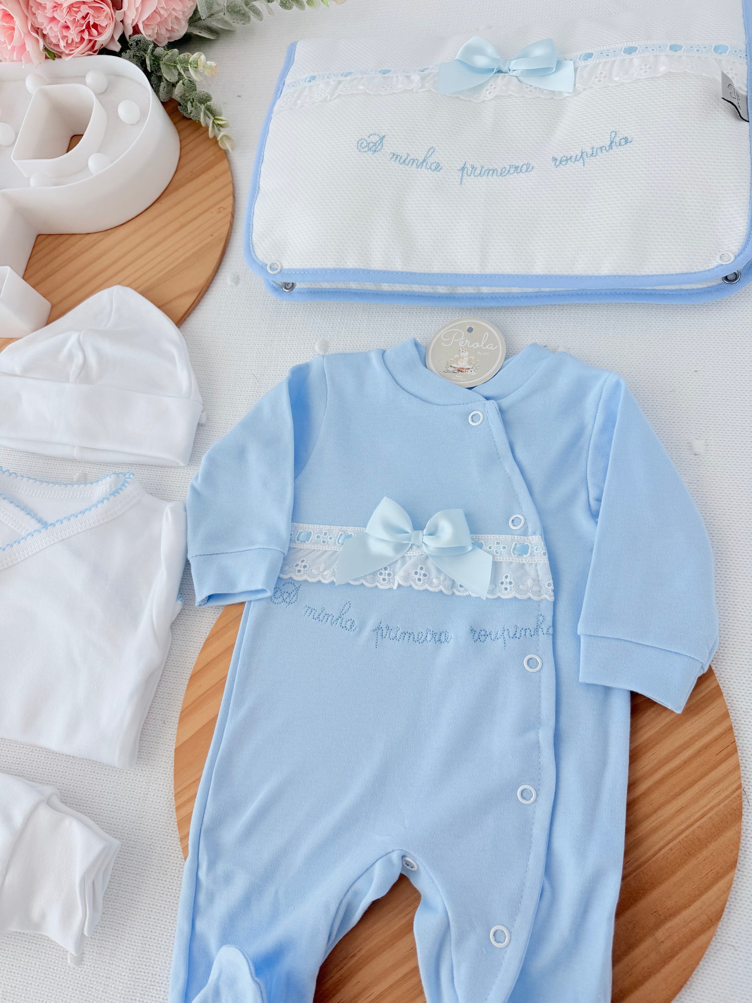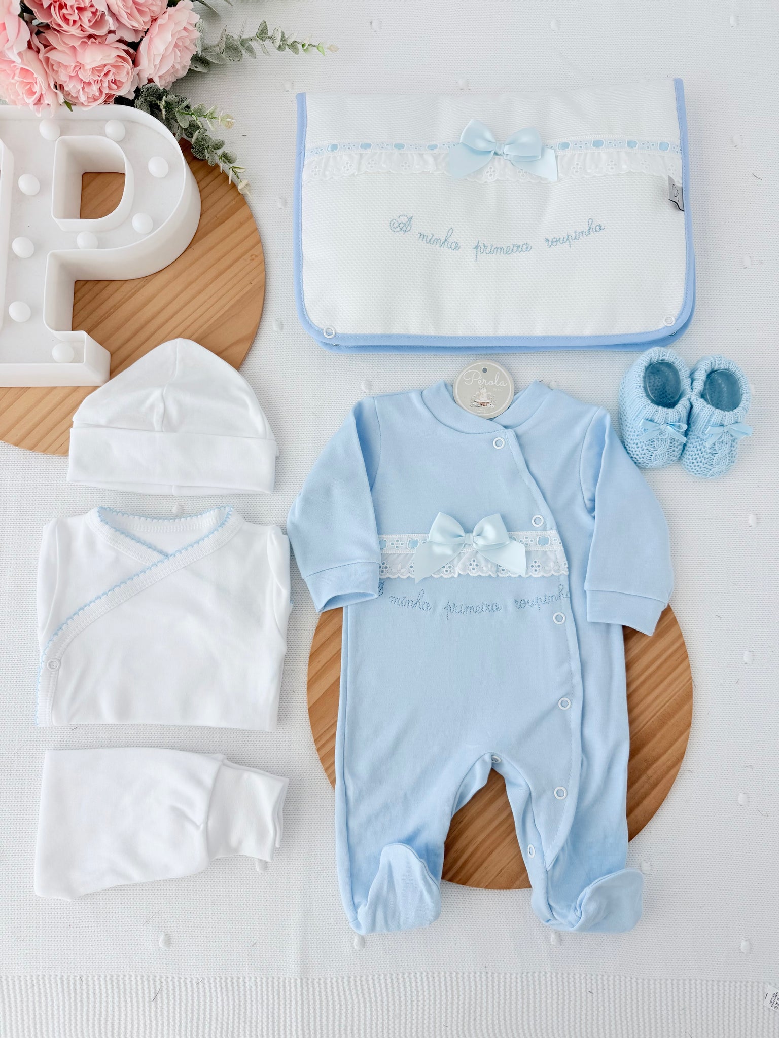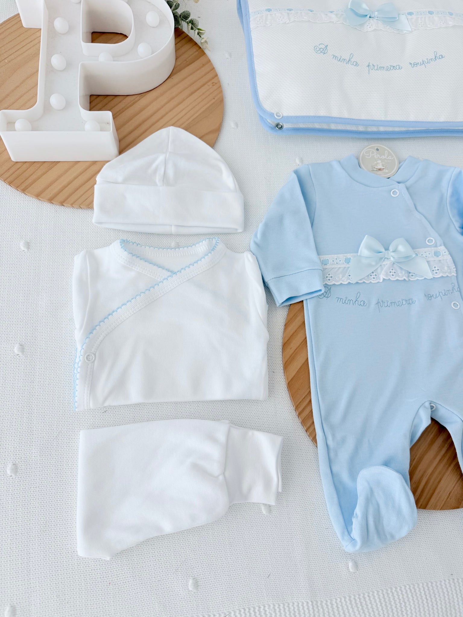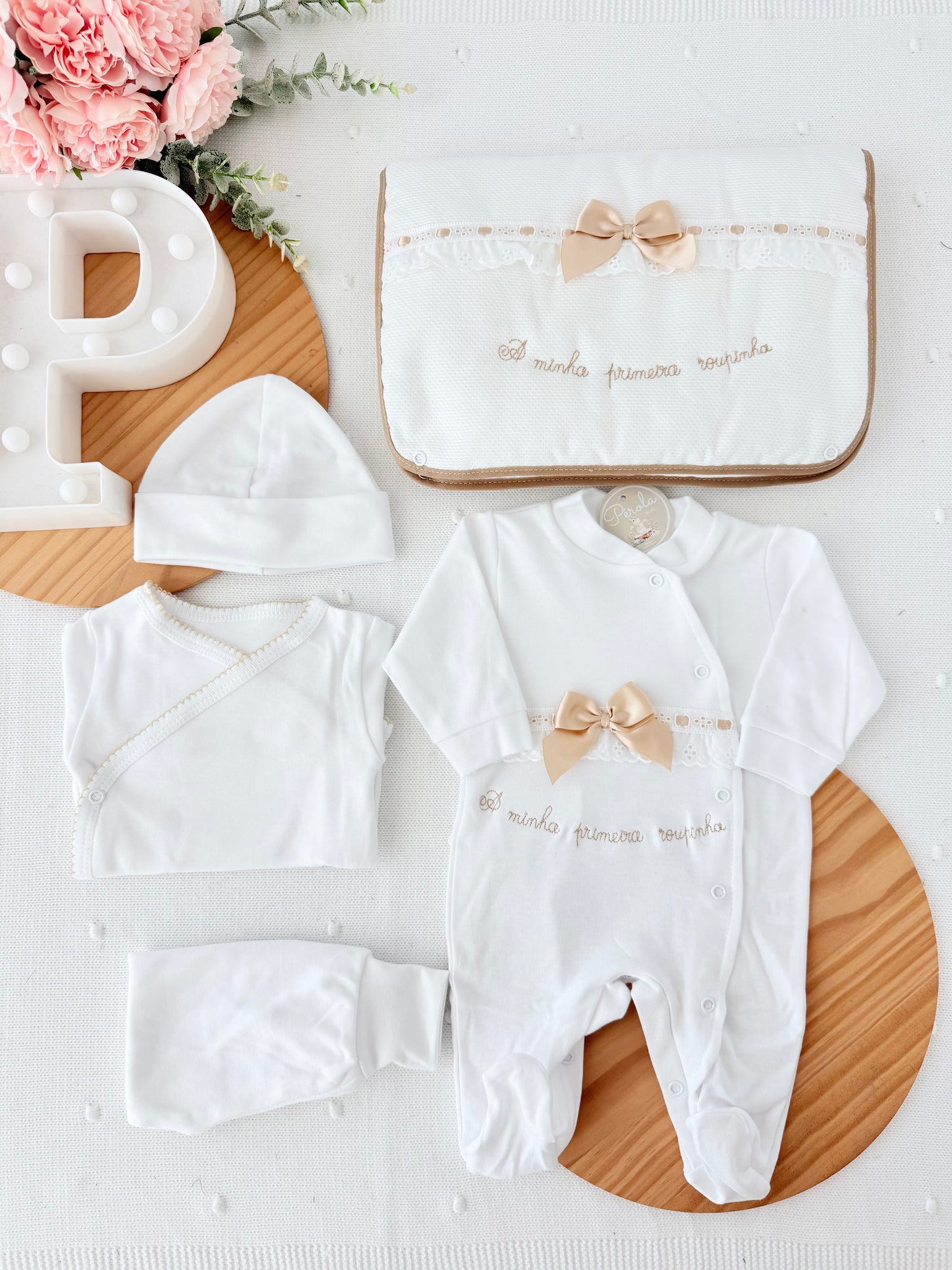 Este conjunto reúne todos os essenciais para vestir o seu bebé com conforto, estilo e muito amor nos primeiros momentos da sua vida. Uma escolha premium para pais que valorizam qualidade e ternura em cada detalhe.