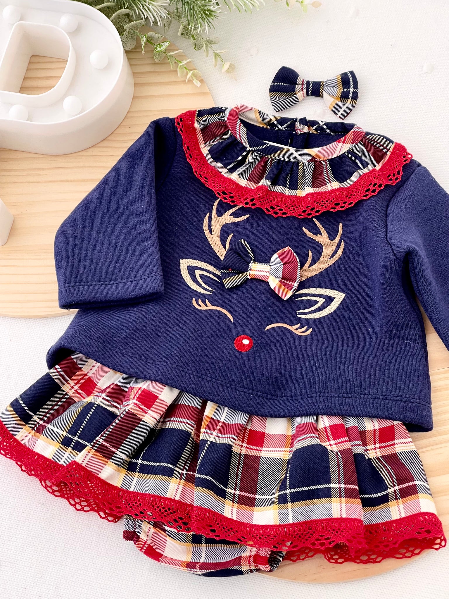Conjunto Renas: gancho, camisola e saia/tapa fraldas