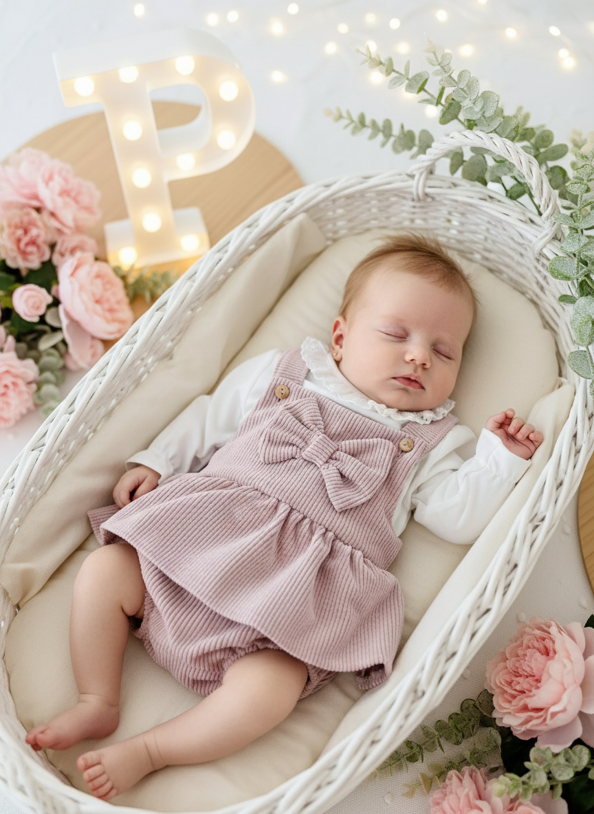Perfeito para batizados, sessões fotográficas ou passeios especiais. Um conjunto que alia elegância e praticidade, mantendo o seu bebé confortável e adorável durante todo o dia.