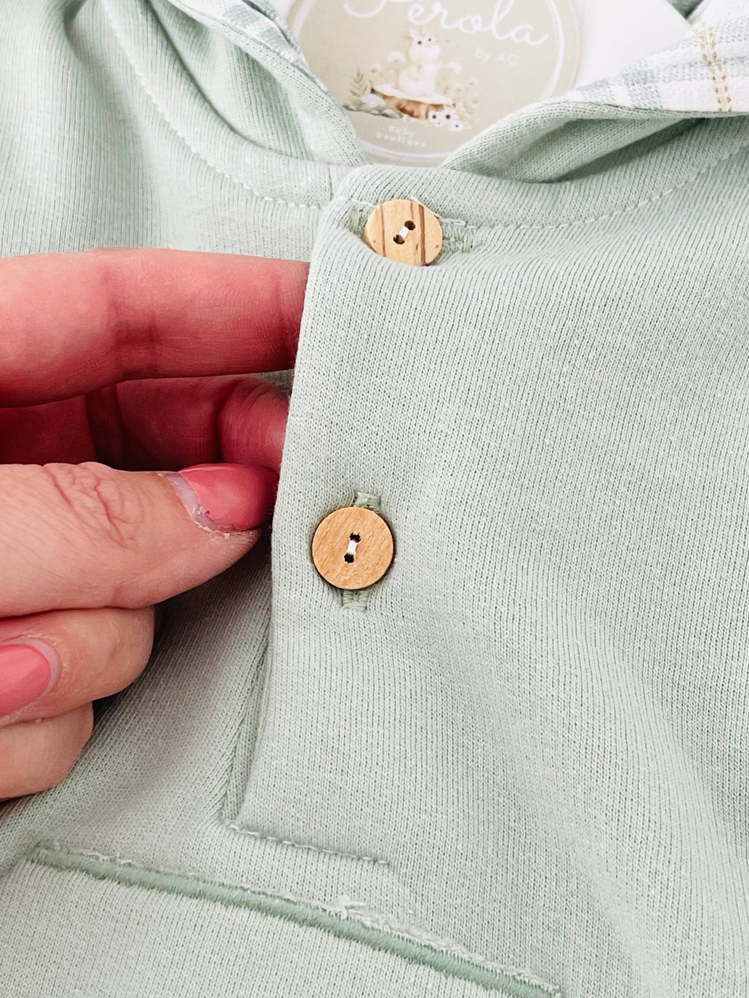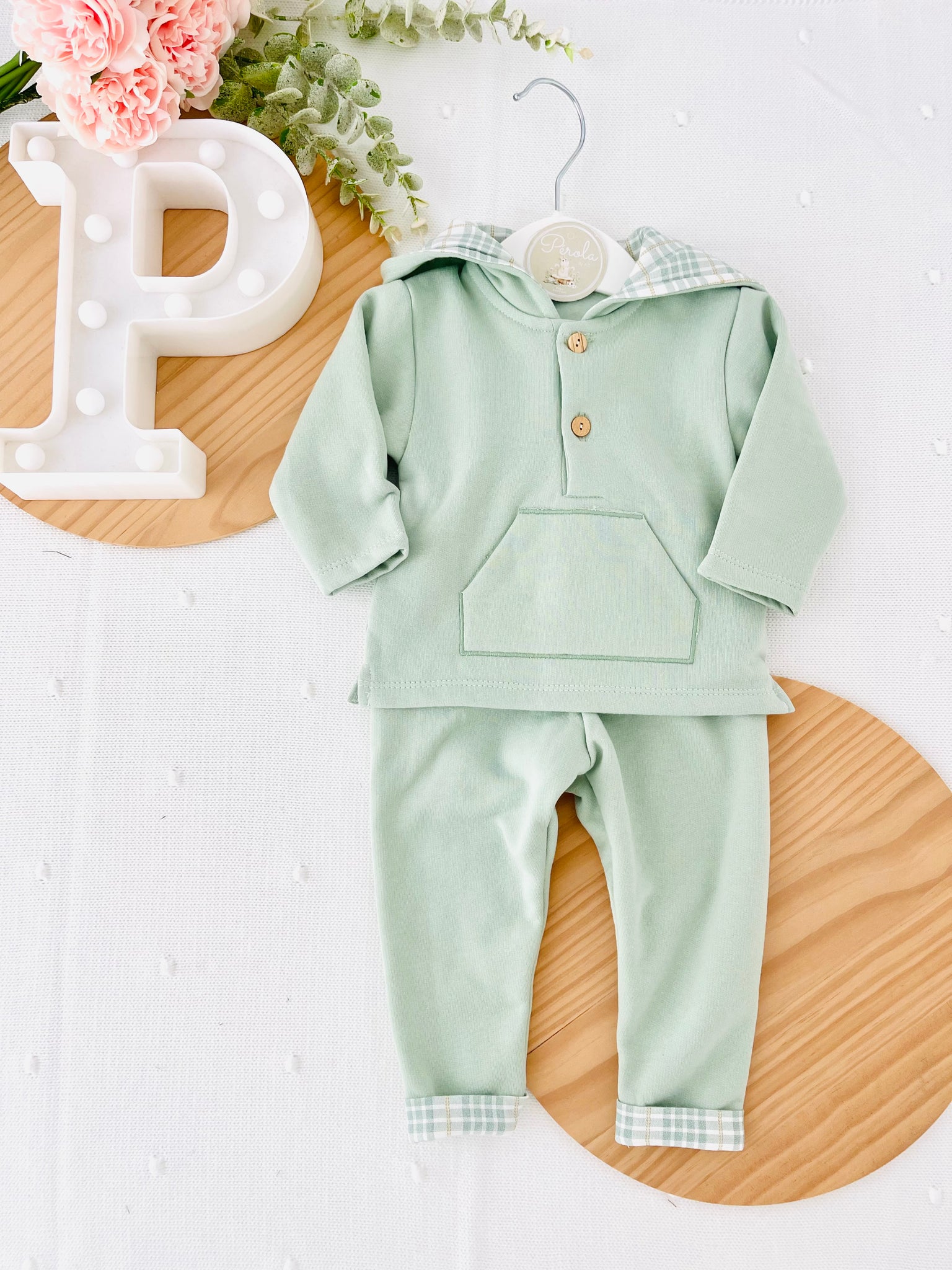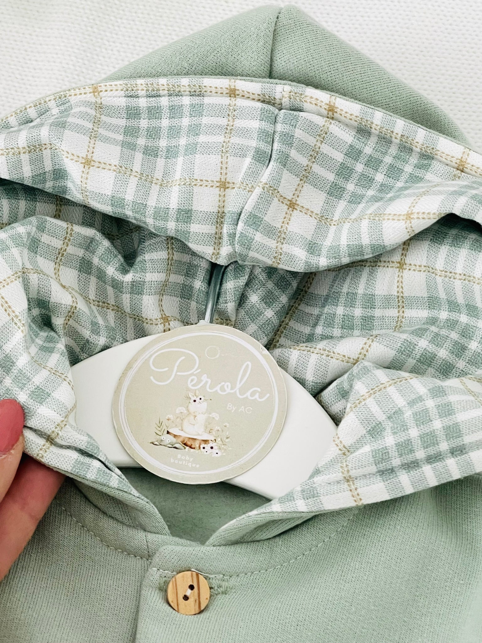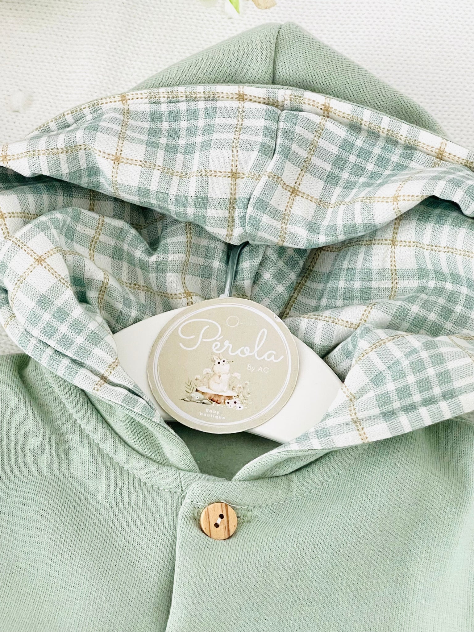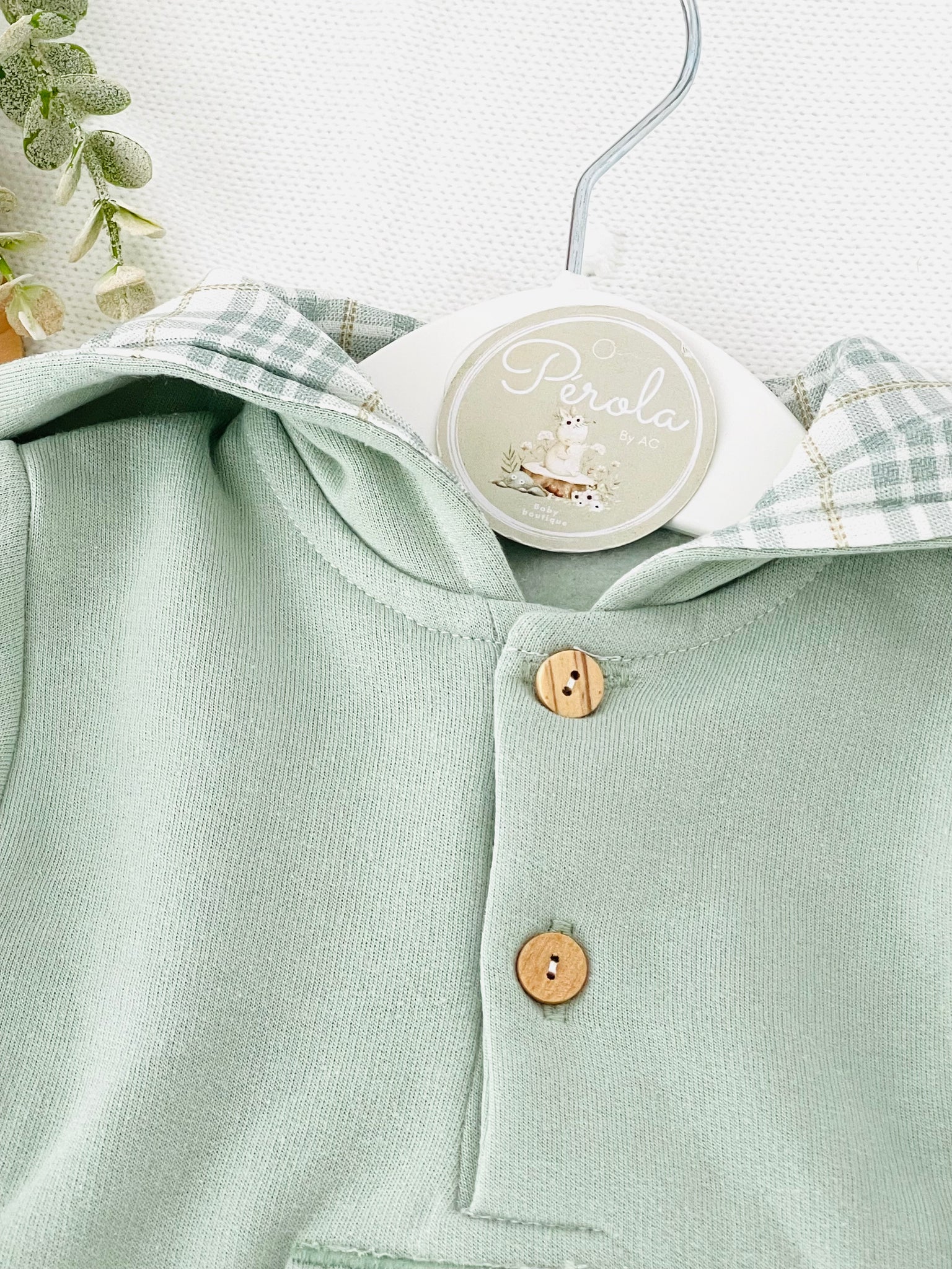 Este adorável conjunto de 2 peças em verde suave é tudo o que o seu bebé precisa para se sentir quentinho e confortável durante o outono e inverno.