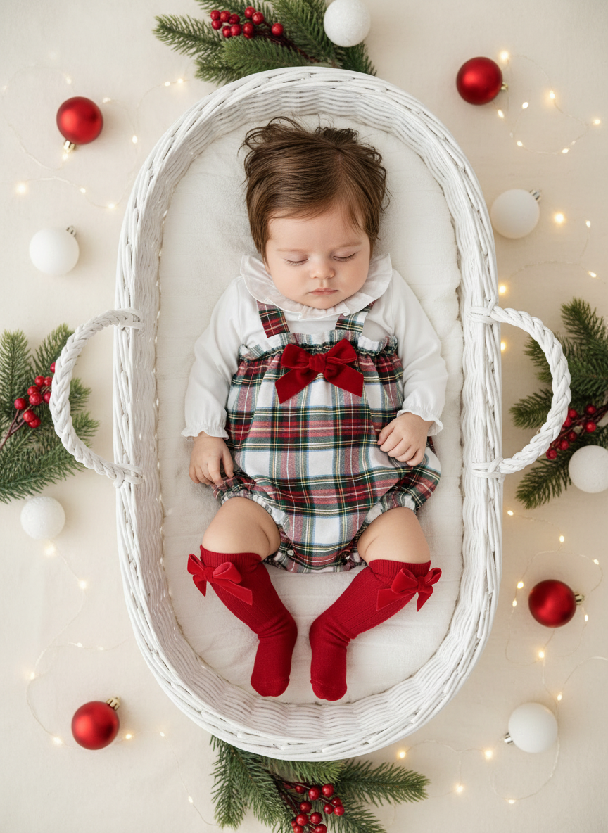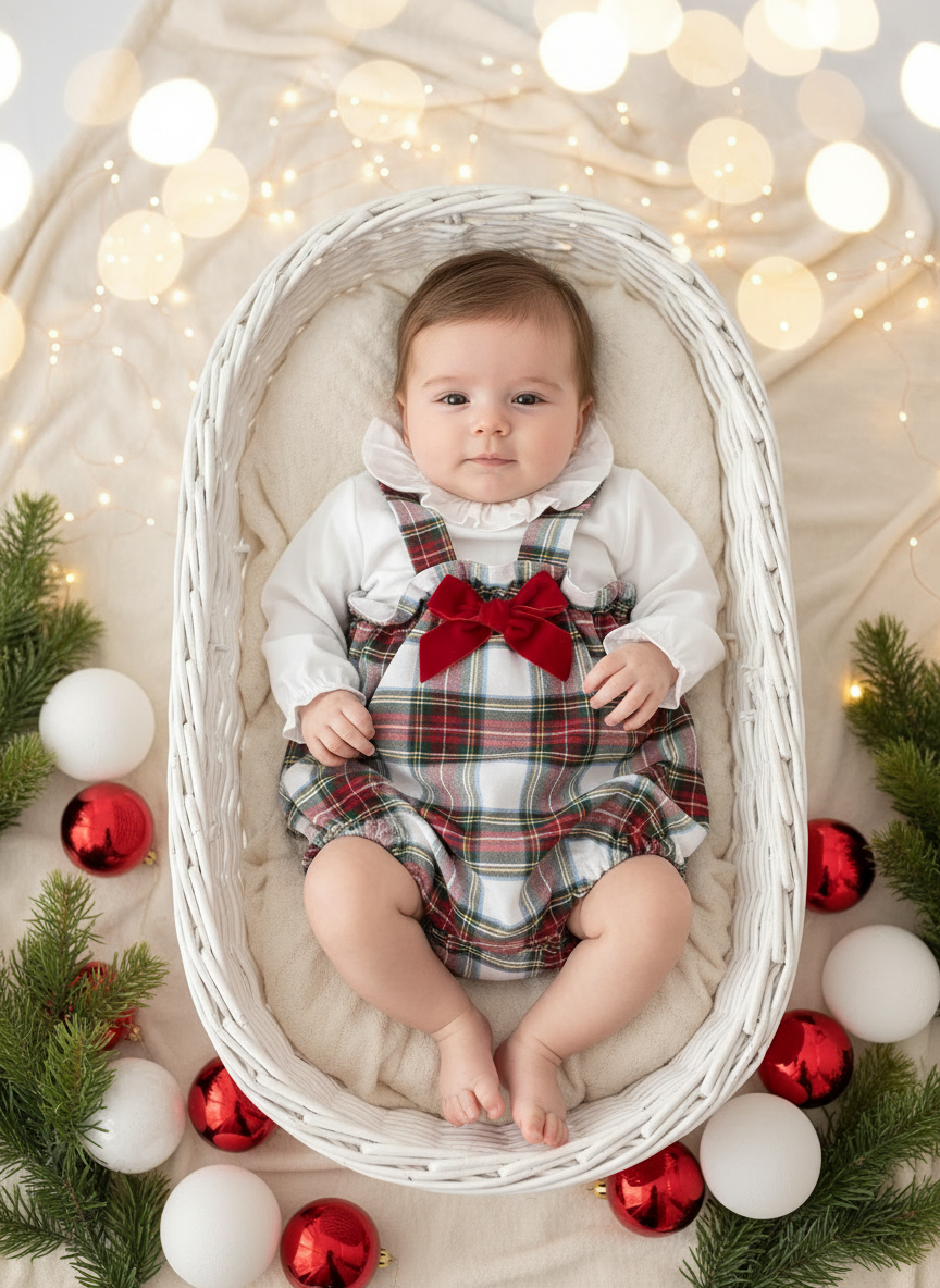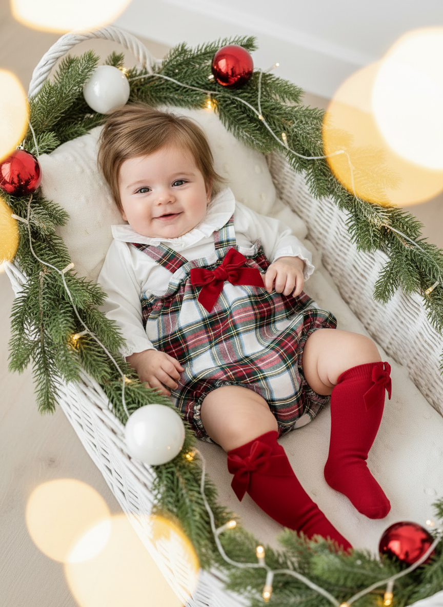 Celebre a época mais mágica do ano com este conjunto encantador em xadrez natalício. Um padrão clássico em tons de vermelho, verde, branco e amarelo que captura perfeitamente o espírito festivo.