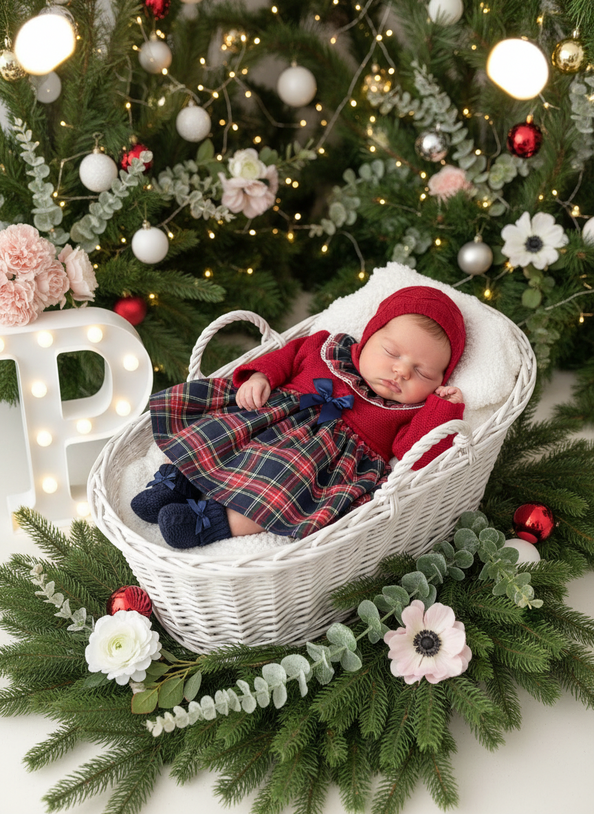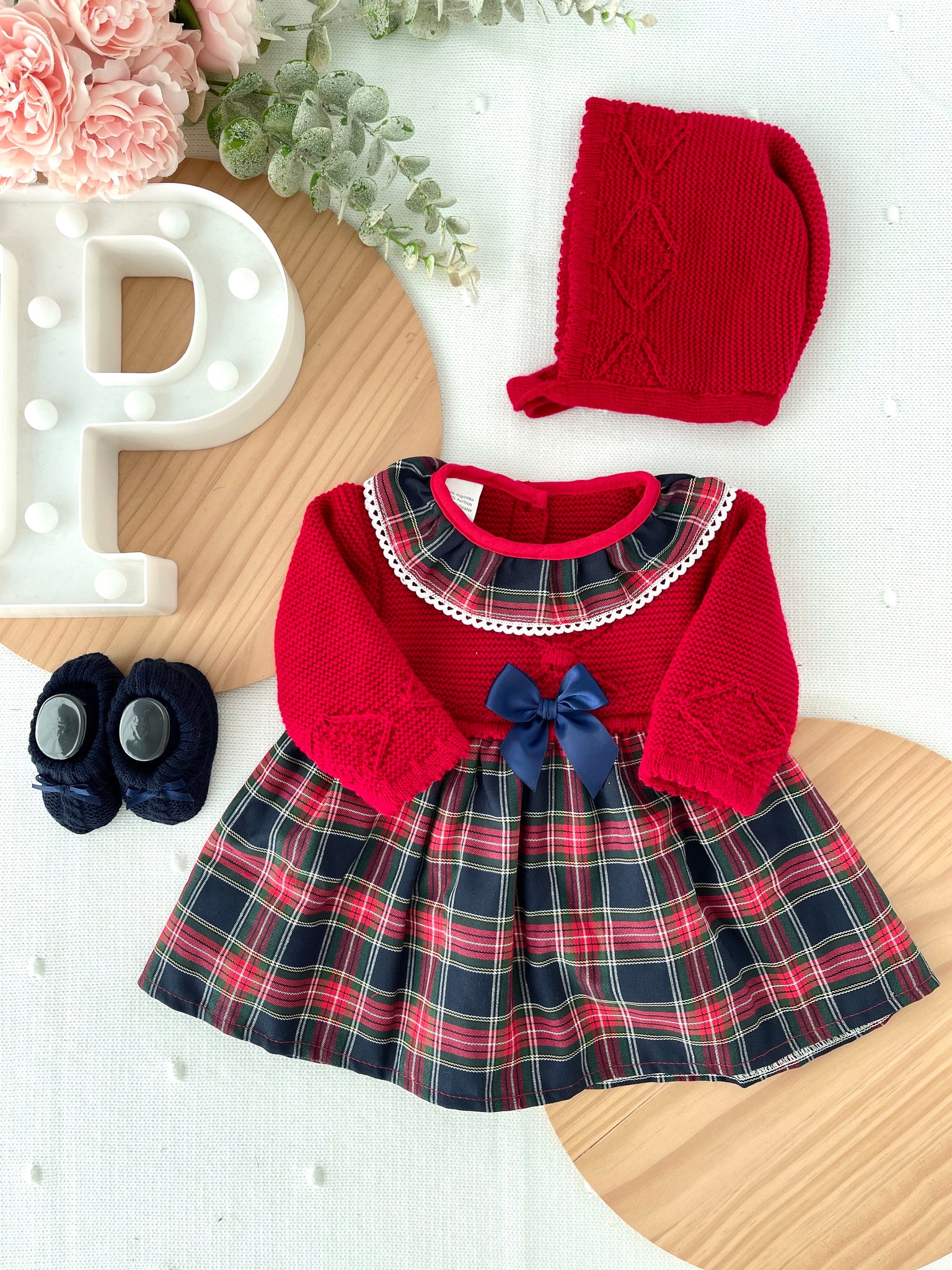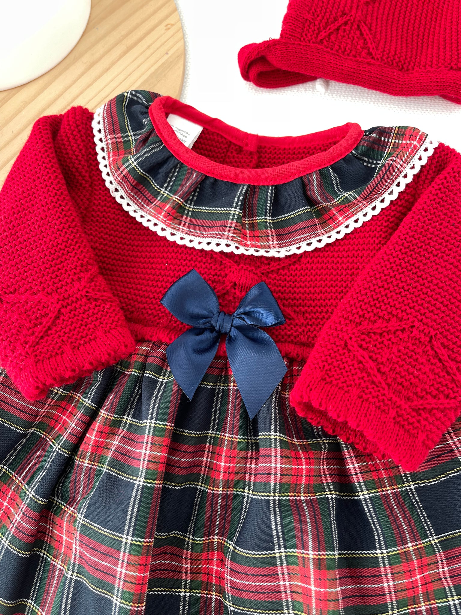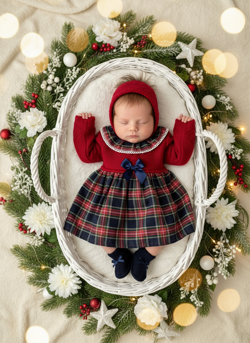 Cada peça é cuidadosamente confecionada com atenção aos detalhes. A combinação do vermelho vibrante com o padrão xadrez clássico cria um visual sofisticado e atemporal, perfeito para as primeiras fotografias e momentos especiais do seu bebé.