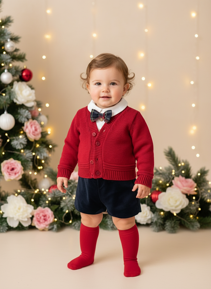 Confecionado em veludo premium de toque aveludado e forrado com flanela quentinha, este conjunto combina elegância atemporal com o conforto que o seu bebé merece. Perfeito para celebrações especiais, sessões fotográficas de Natal ou para criar memórias inesquecíveis em família.