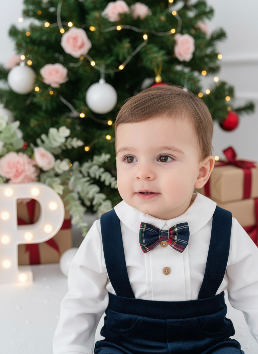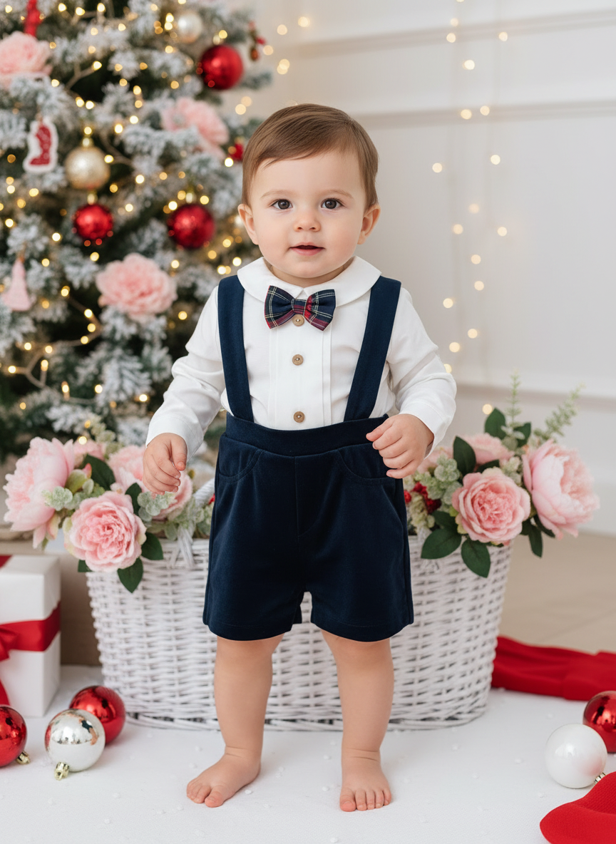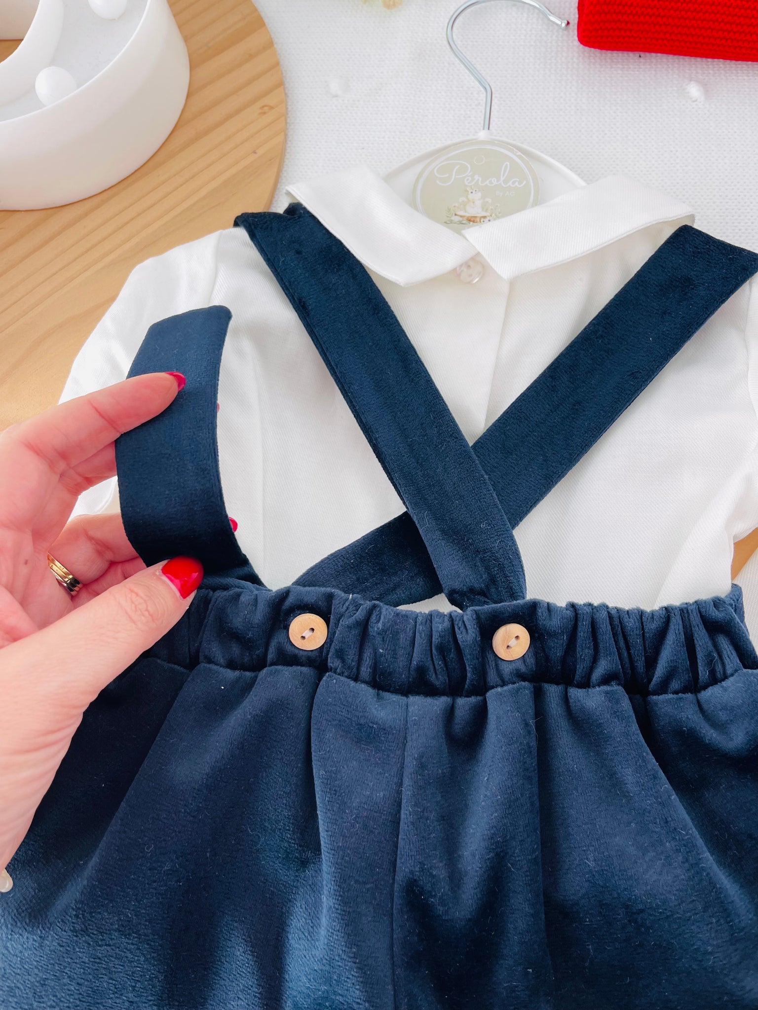 Prepare-se para derreter de ternura! Este conjunto premium em veludo azul marinho, EXCLUSIVO da nossa loja, é a escolha perfeita para transformar o seu pequeno príncipe num verdadeiro cavalheiro.