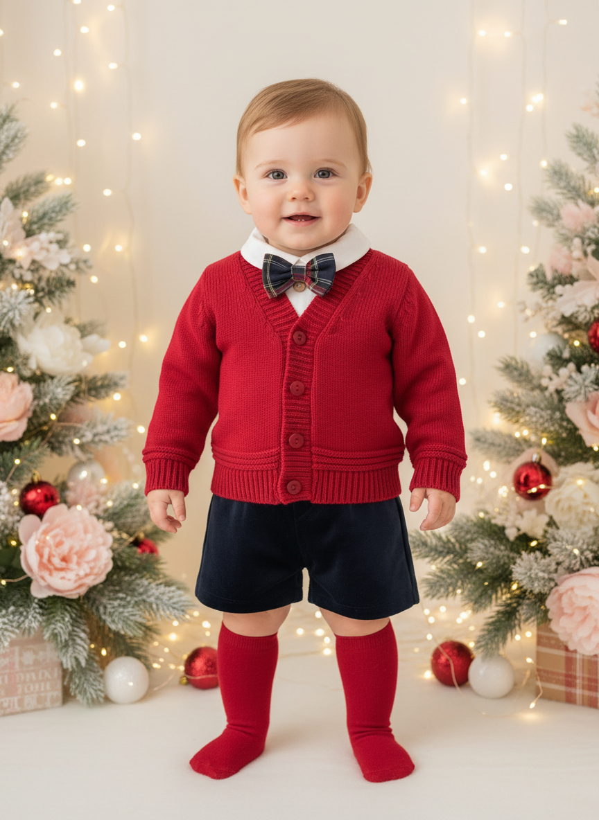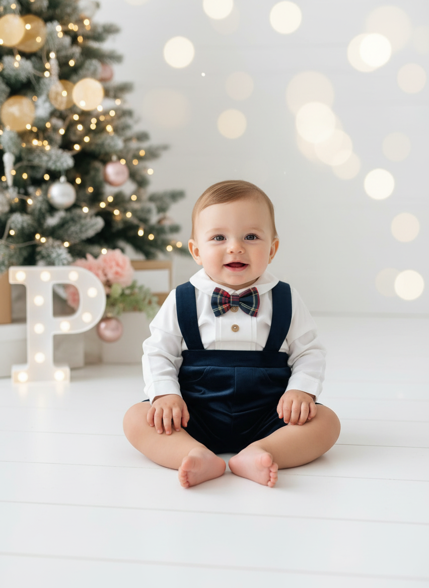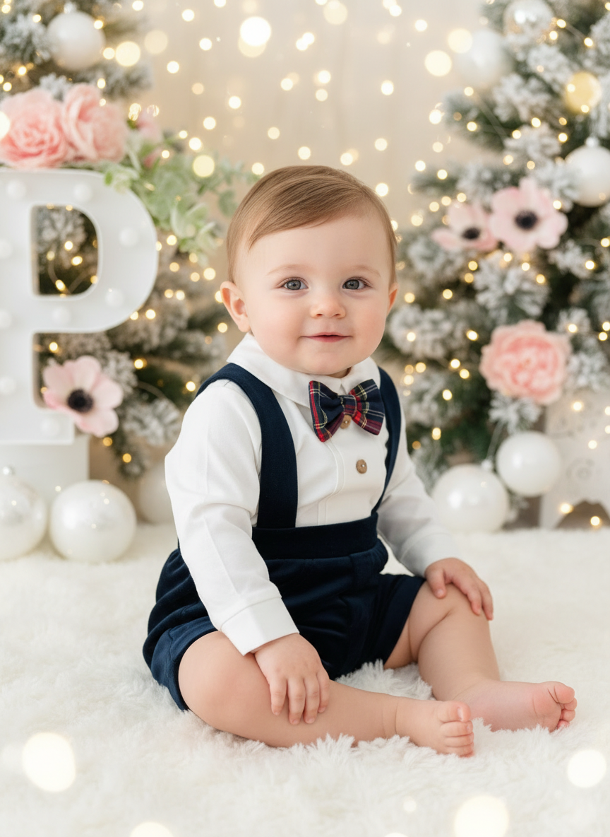 Prepare-se para derreter de ternura! Este conjunto premium em veludo azul marinho, EXCLUSIVO da nossa loja, é a escolha perfeita para transformar o seu pequeno príncipe num verdadeiro cavalheiro.