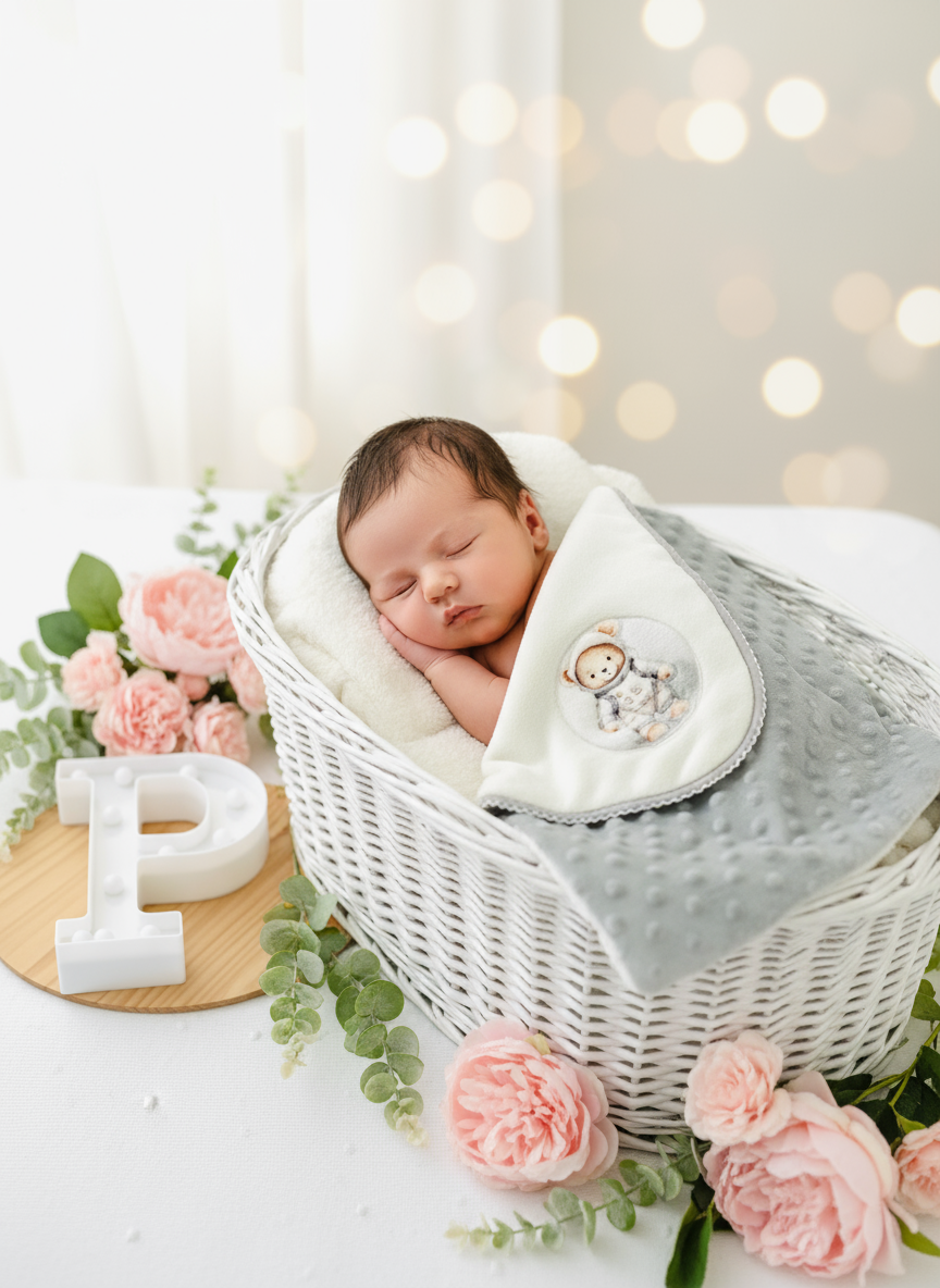 Manta dupla face quentinha do tema astronauta . Muito bonitas e macias.