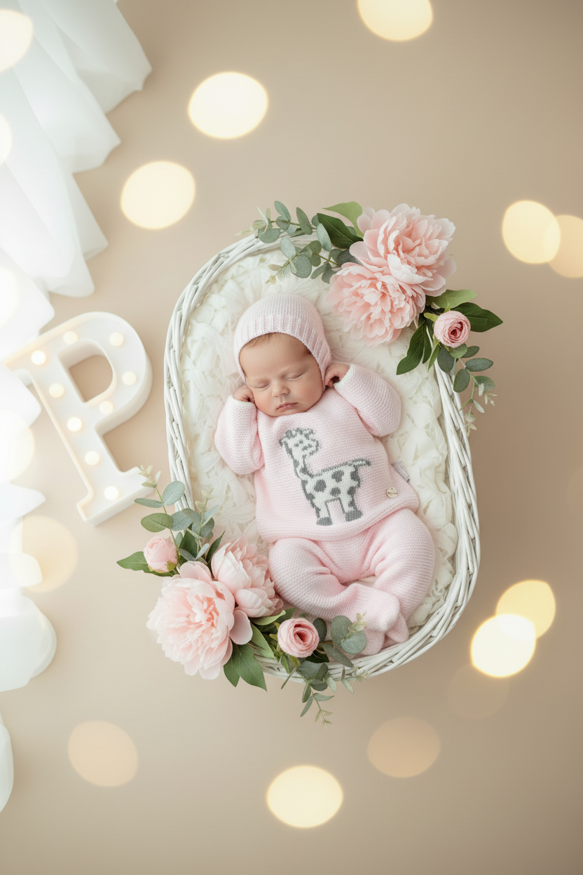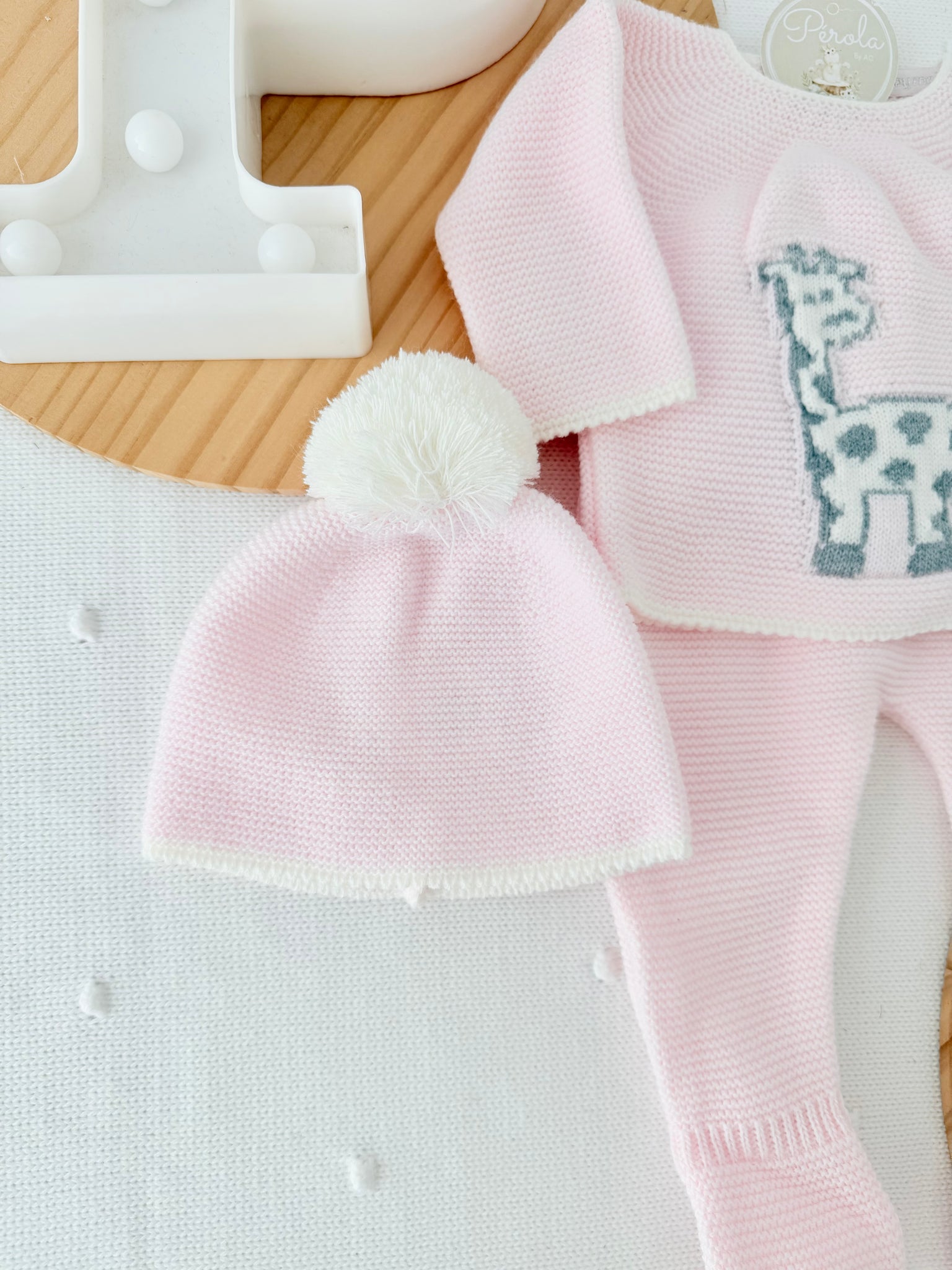 Um conjunto encantador em malha quentinha, ideal para envolver o seu bebé em conforto e ternura durante os dias mais frescos. Com um adorável motivo de girafa, este conjunto combina funcionalidade e charme numa peça atemporal.