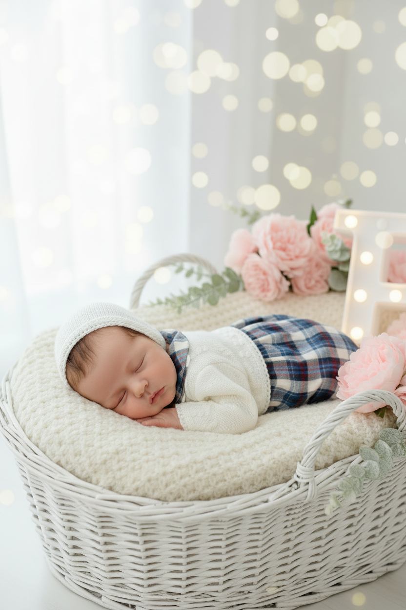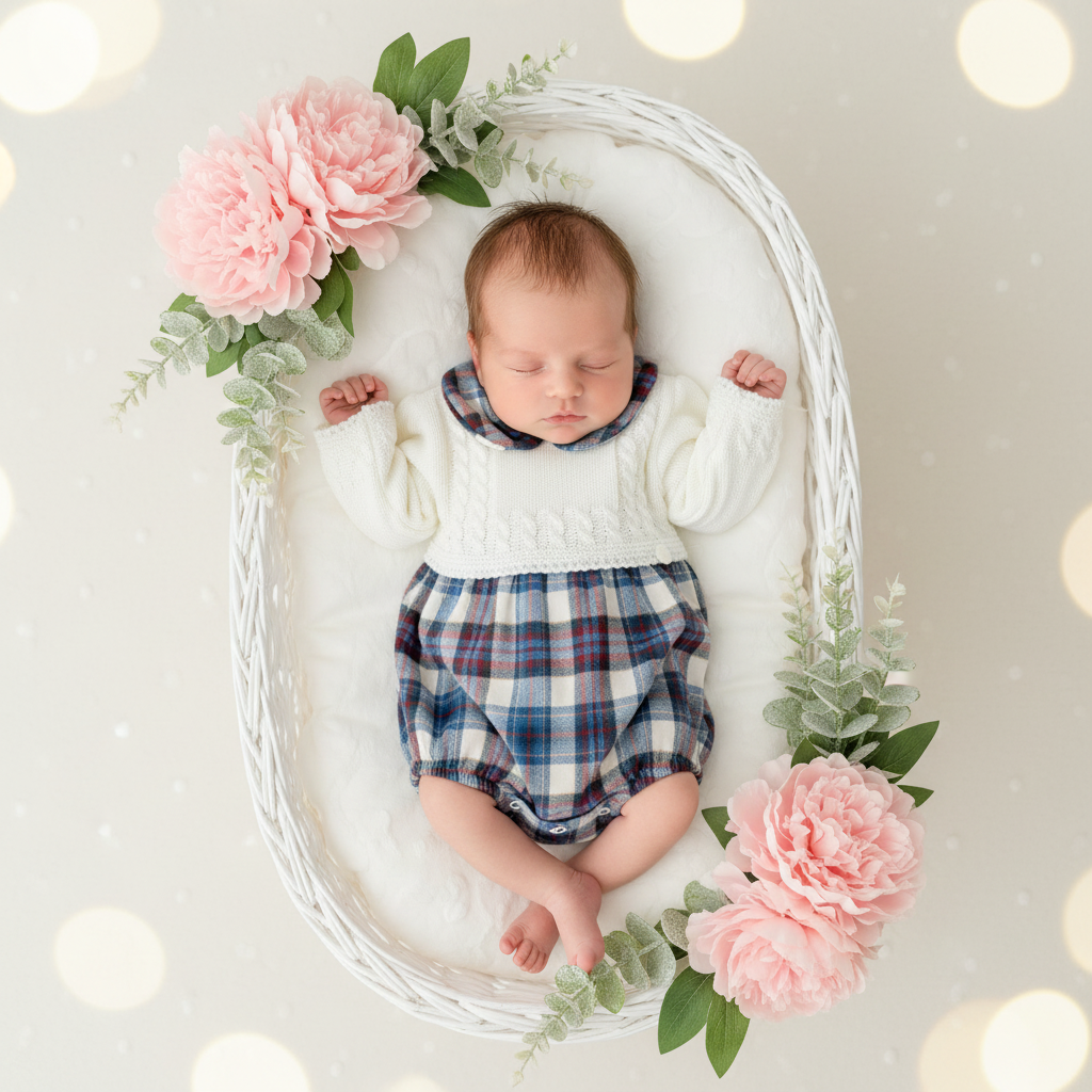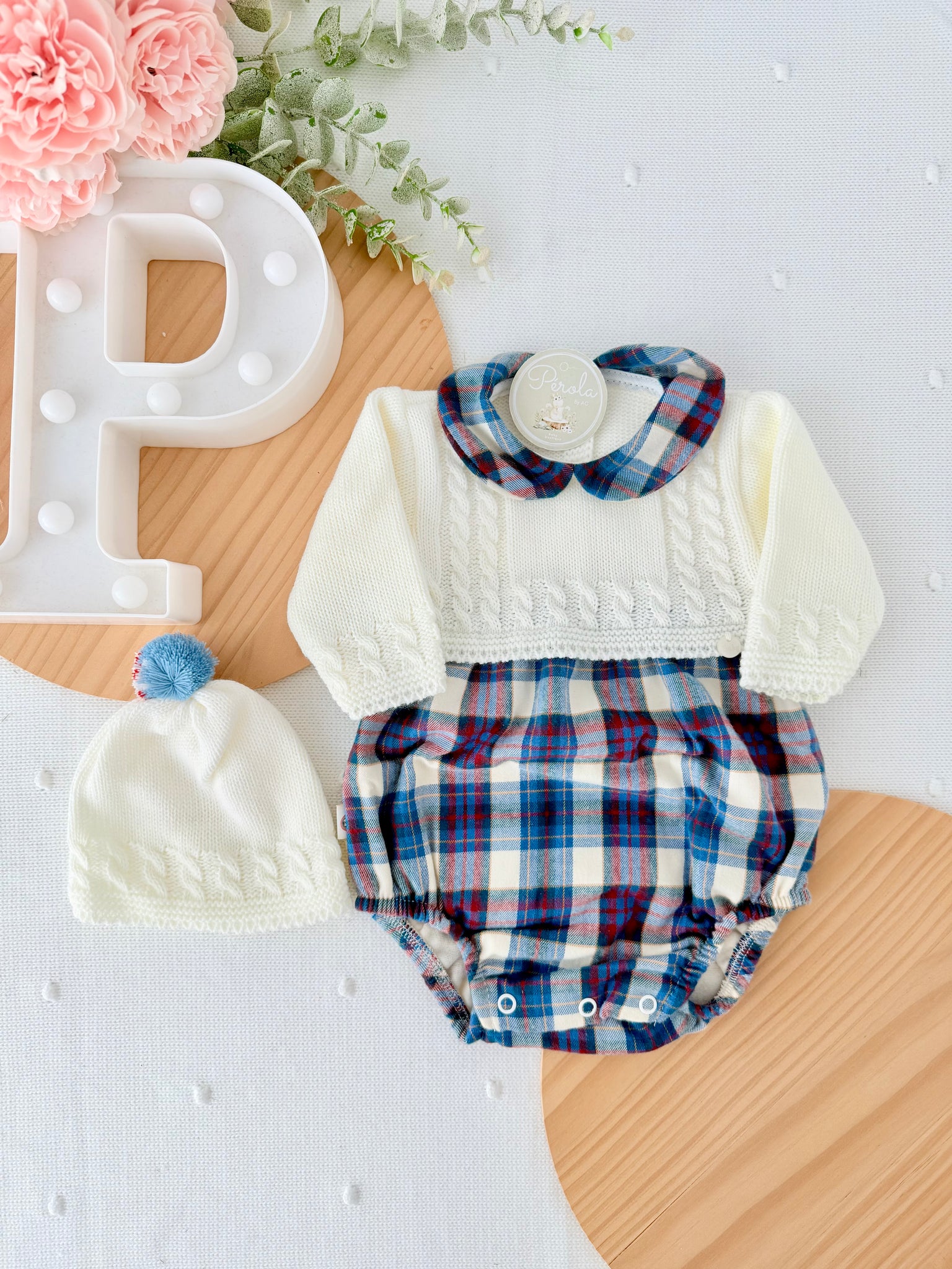 Um conjunto encantador que combina elegância e conforto para os primeiros dias do seu bebé. Este conjunto inclui fofo e gorro coordenados, confeccionados em tecidos macios e delicados.