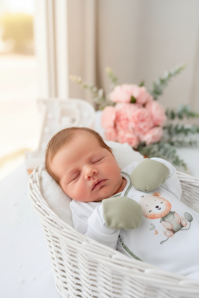 - Tecidos suaves e delicados, ideais para a pele sensível do bebé