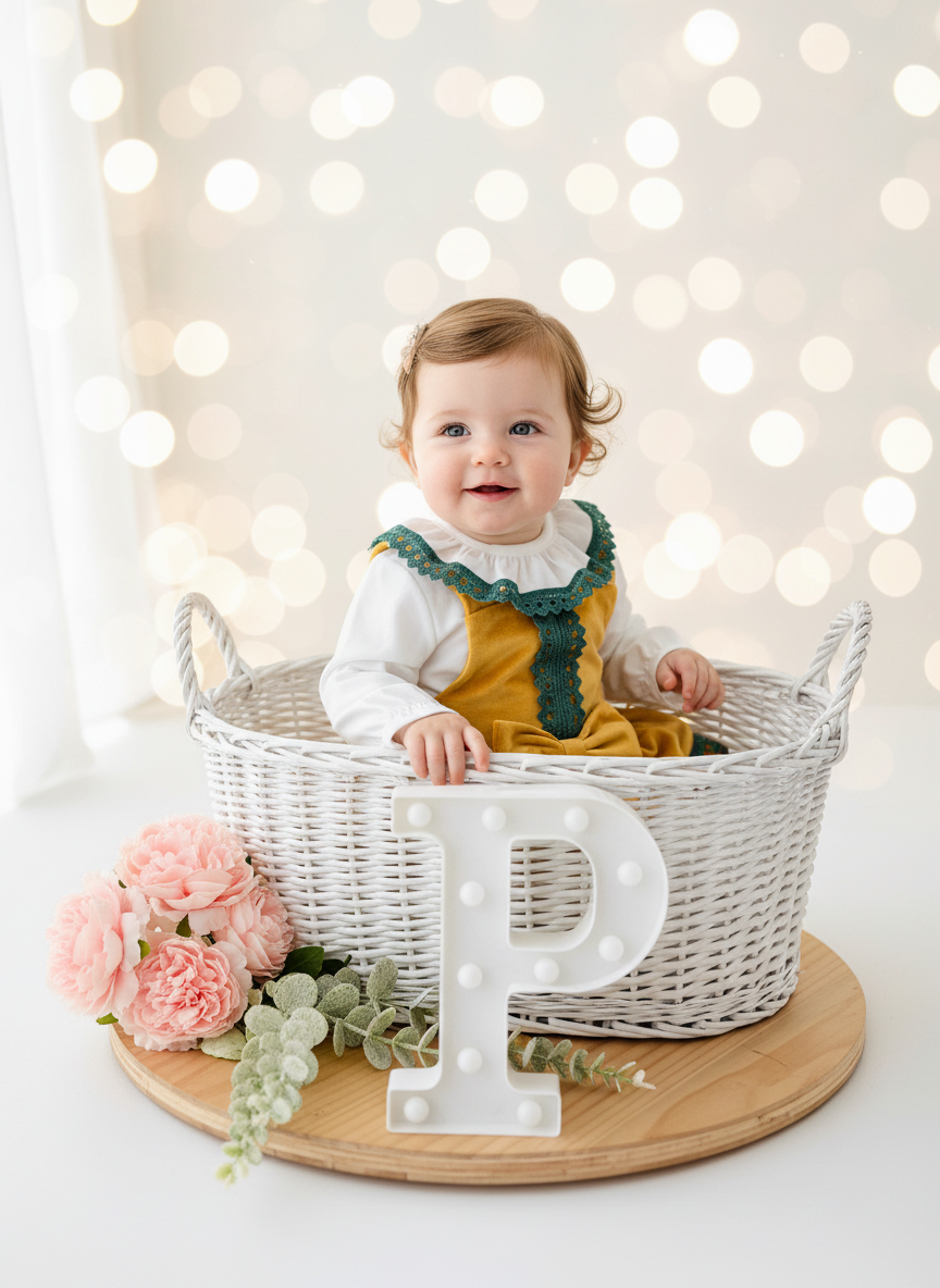 Um conjunto muito giro e fora do vulgar que vai fazer a tua bebé brilhar.
