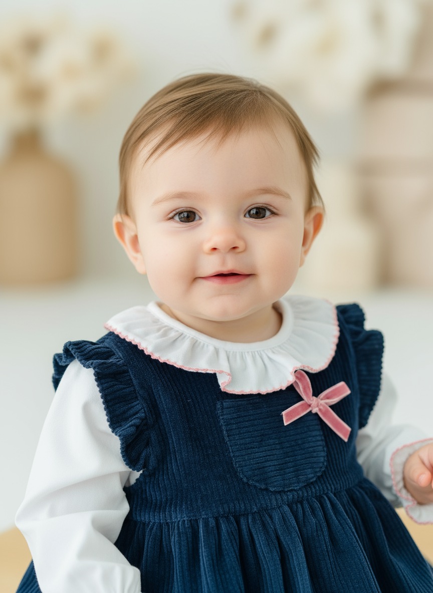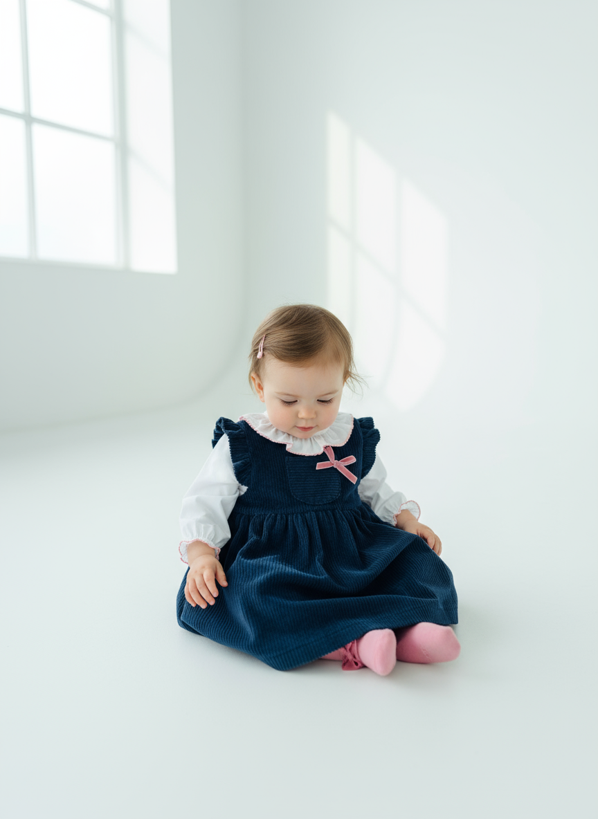 Inclui duas peças: vestido azul marinho forrado com tecido flanela e blusa com golinha.