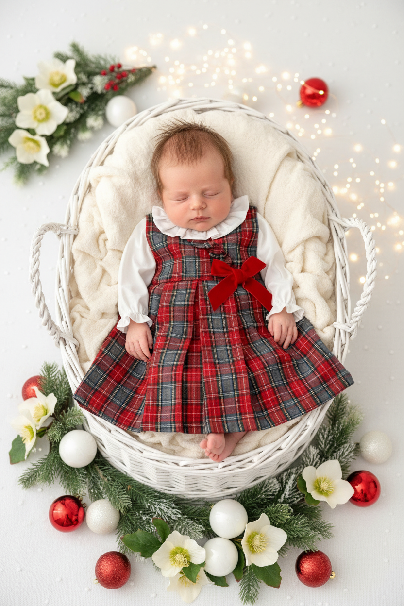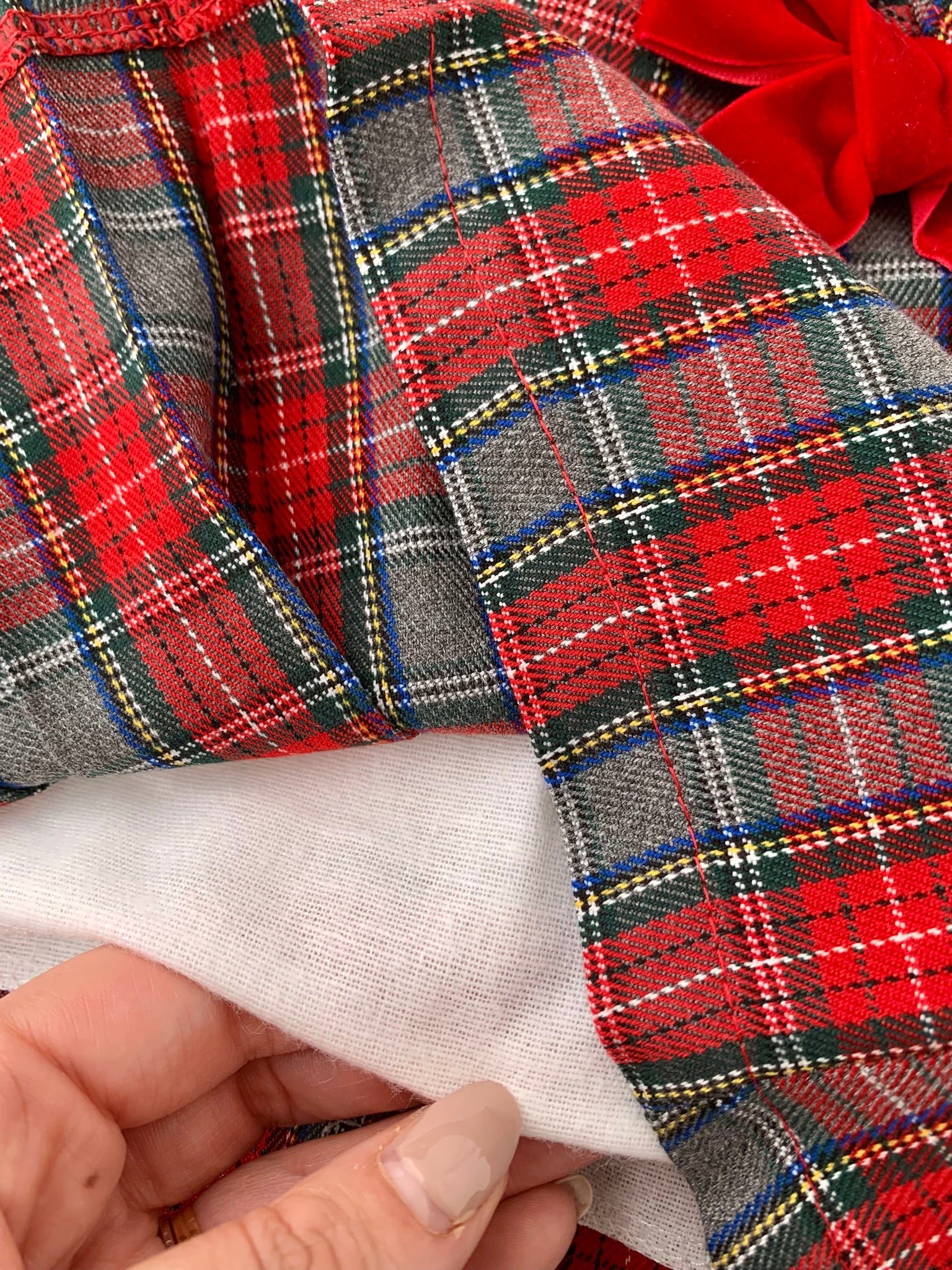 Inclui duas peças: vestido xadrez forrado com tecido flanela e blusa com golinha.