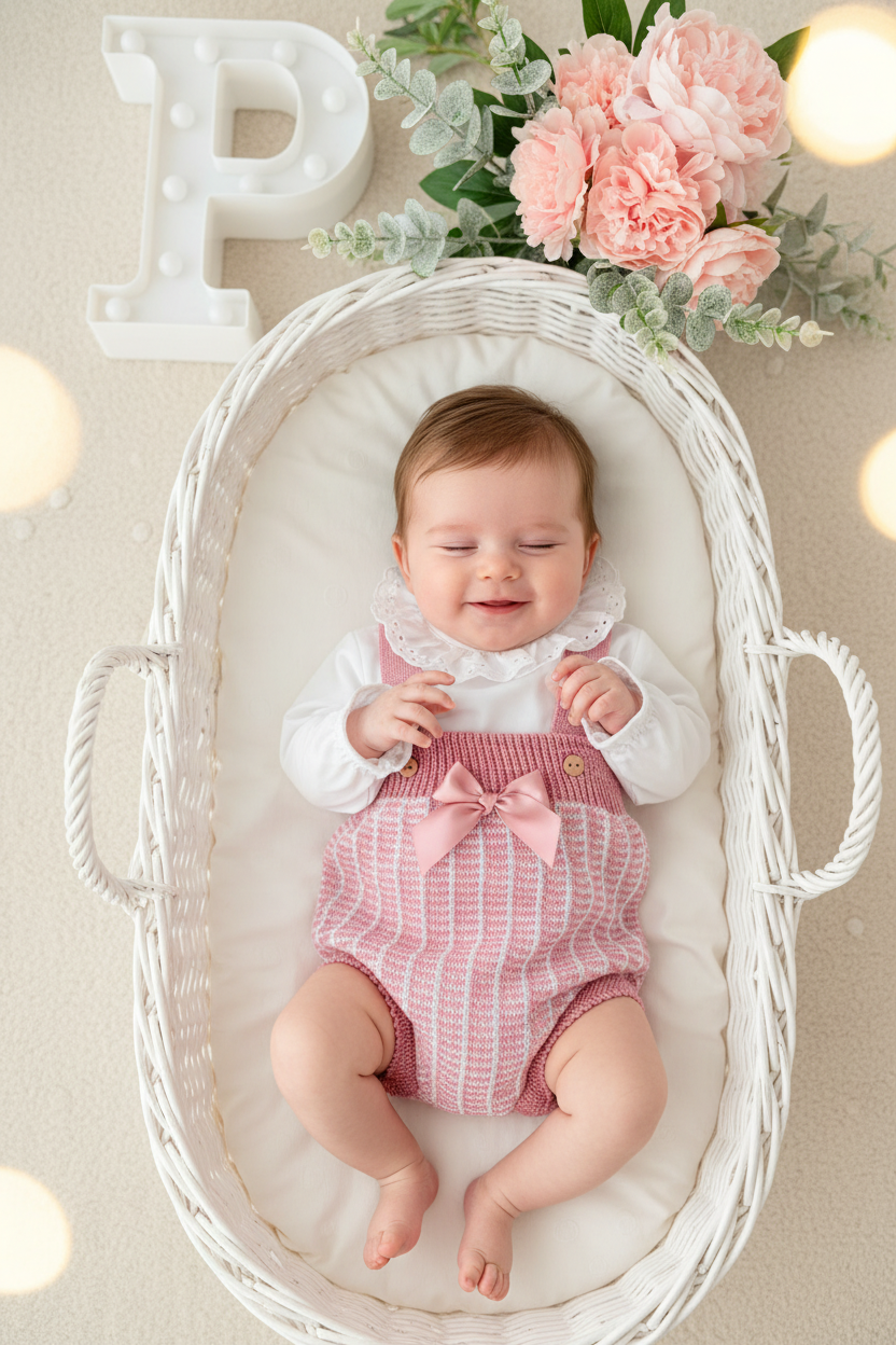 Um conjunto encantador e completo para os primeiros dias do seu bebé. Confeccionado em 100% algodão macio e respirável, este conjunto oferece o máximo conforto e delicadeza para a pele sensível do recém-nascido.