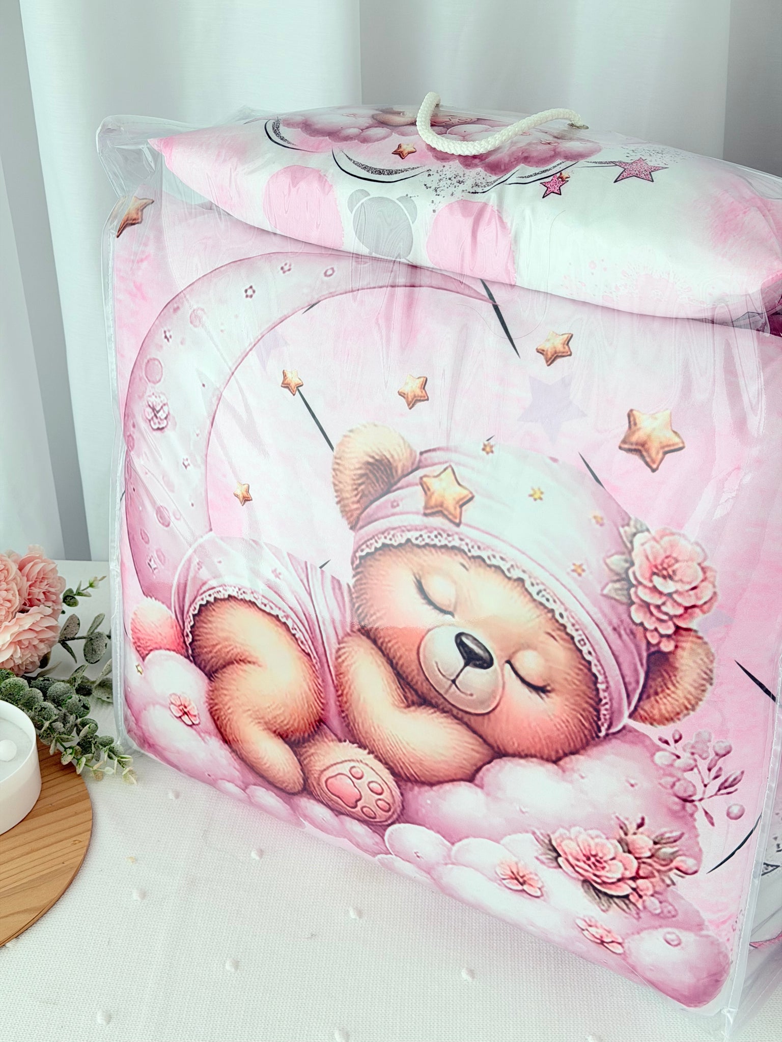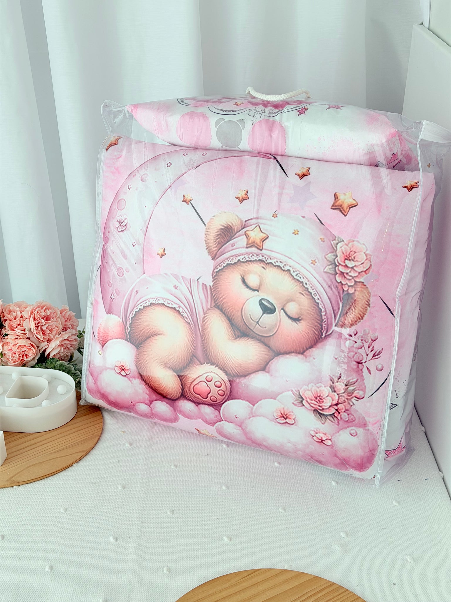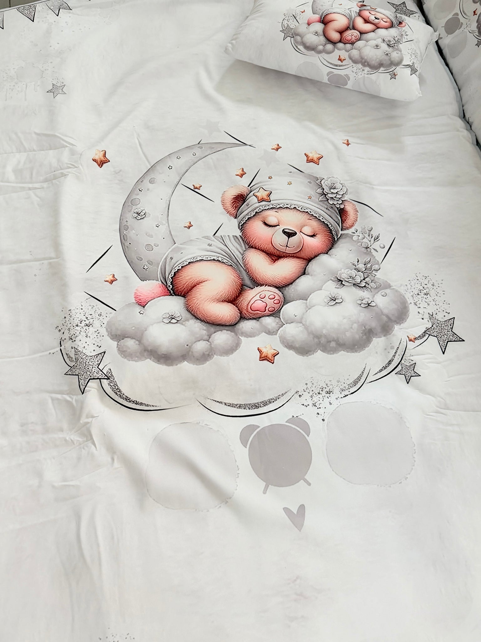 • Almofada coordenada com design encantador de ursinho a dormir numa nuvem