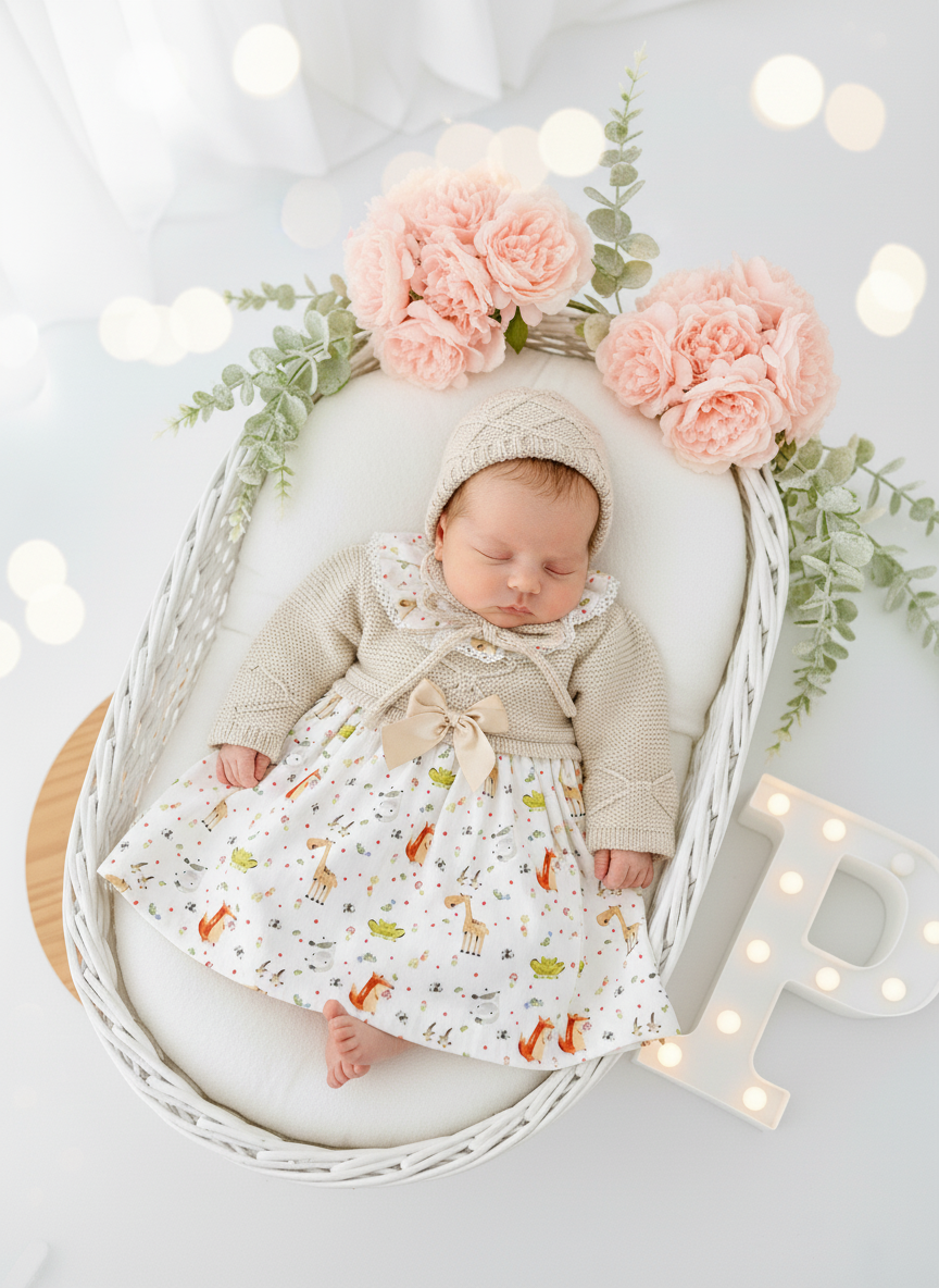Vestido e touca Bege