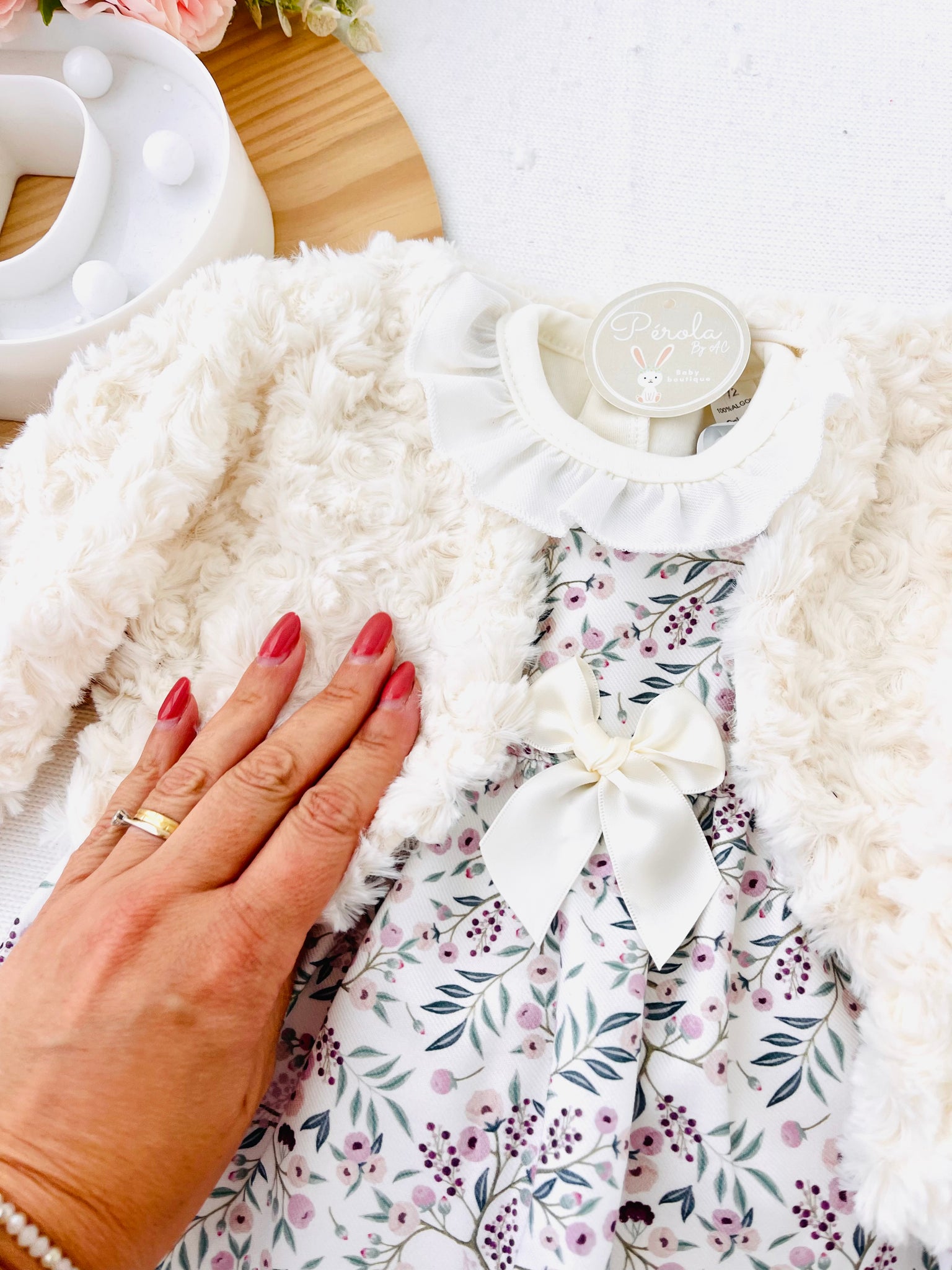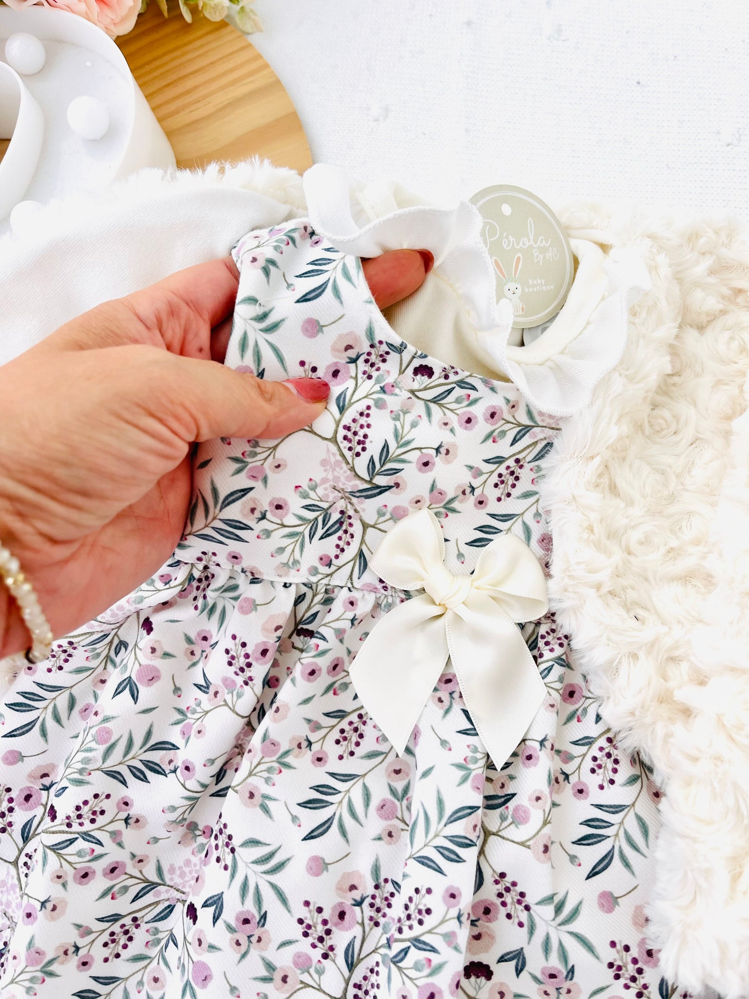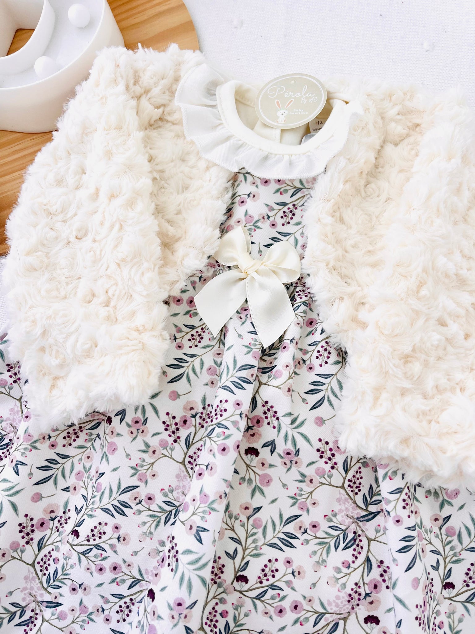 Conjunto Clarinha: casaco, vestido e camisola com golinha