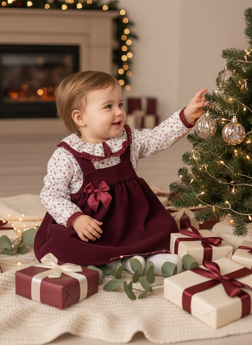 Este conjunto de 3 peças em bombazine Bordeaux é a escolha perfeita para ocasiões especiais!