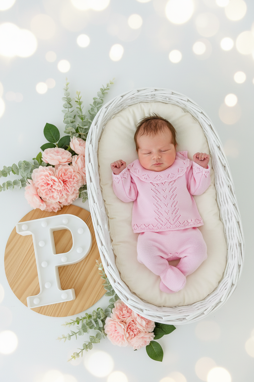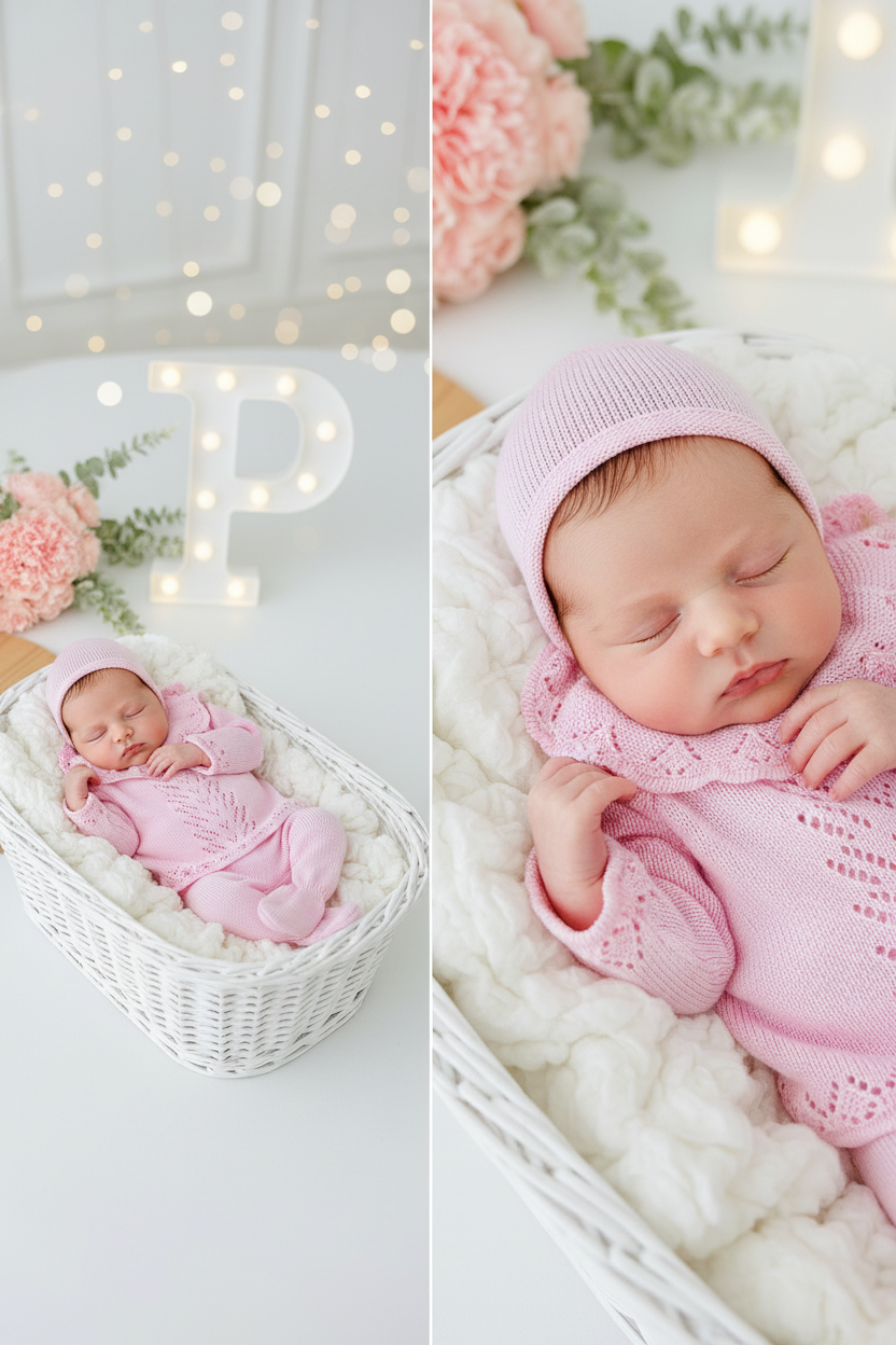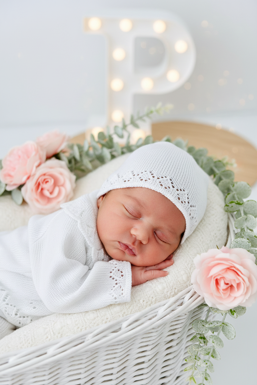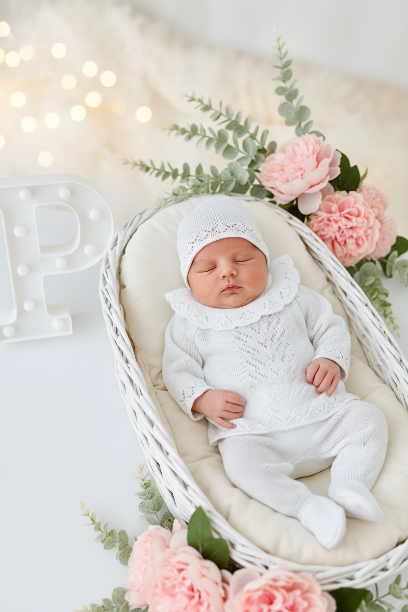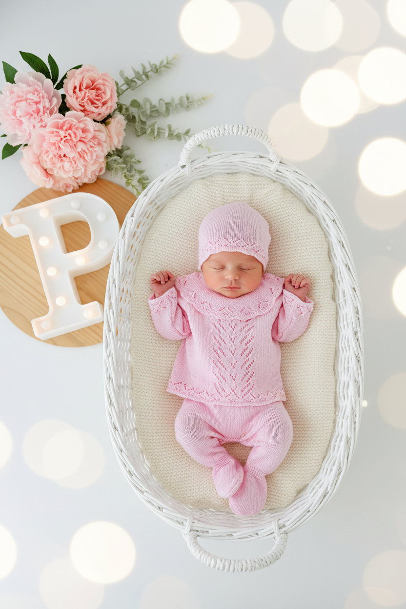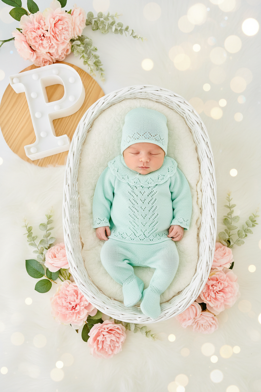 Conjunto recém-nascido com golinha: camisola, calças e touca Primavera Verão