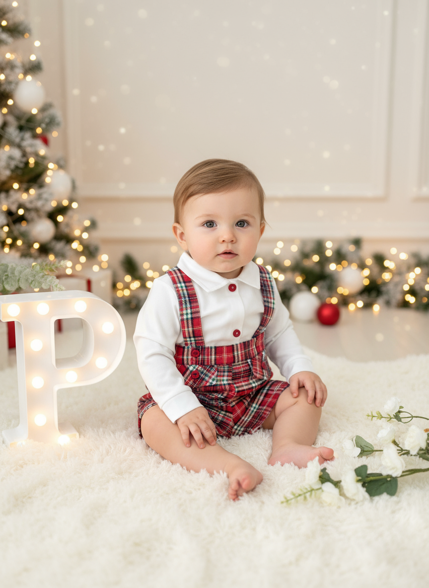 Prepare o seu pequeno cavalheiro para brilhar neste Natal! O nosso Conjunto em xadrez de 2 peças é a escolha perfeita para criar momentos inesquecíveis durante a época festiva. ❤️