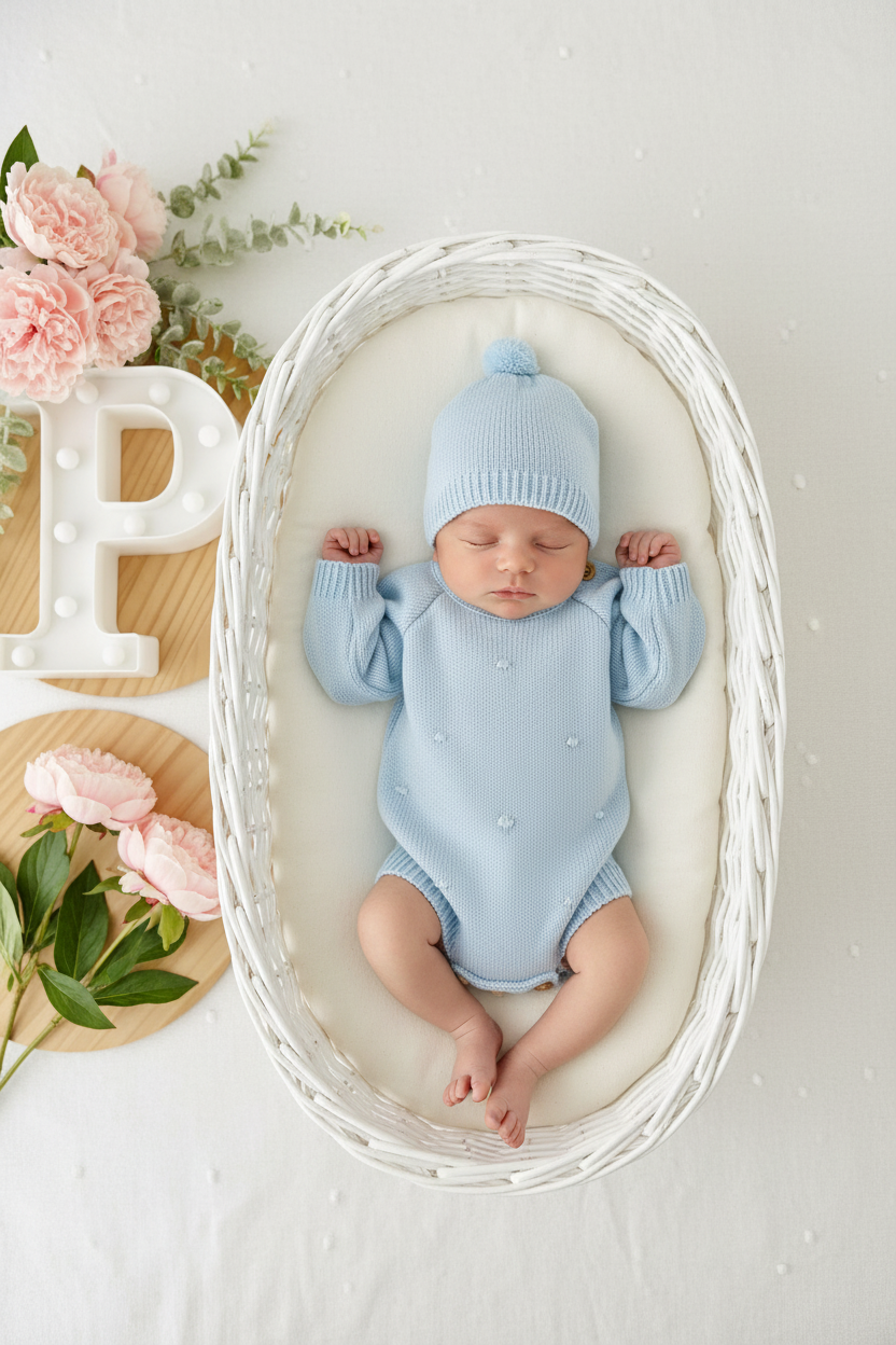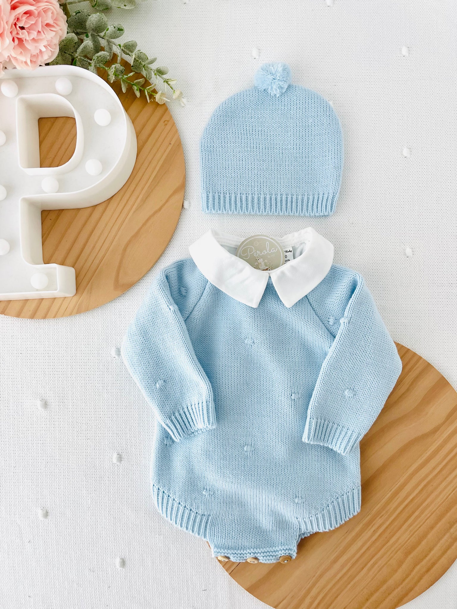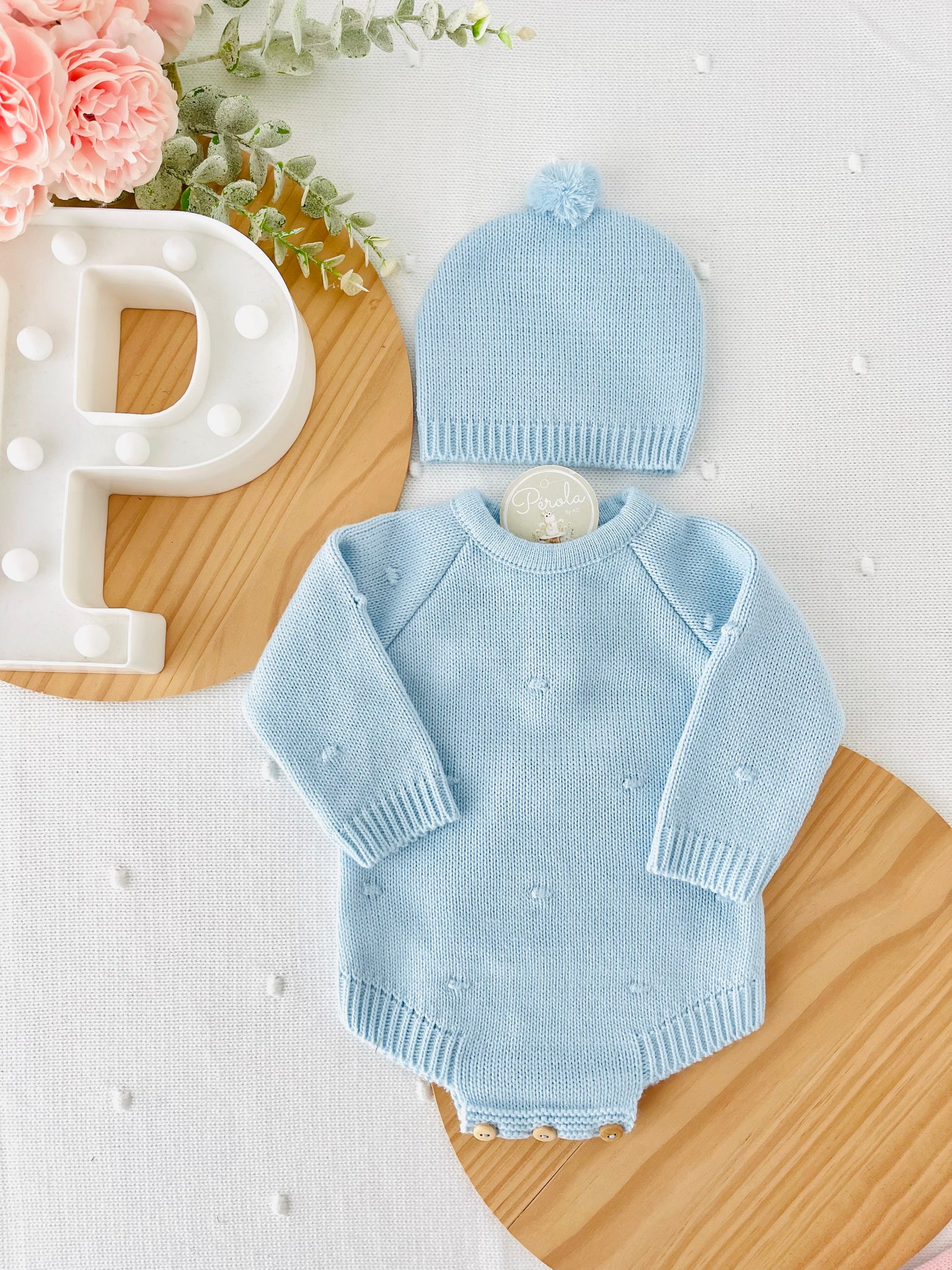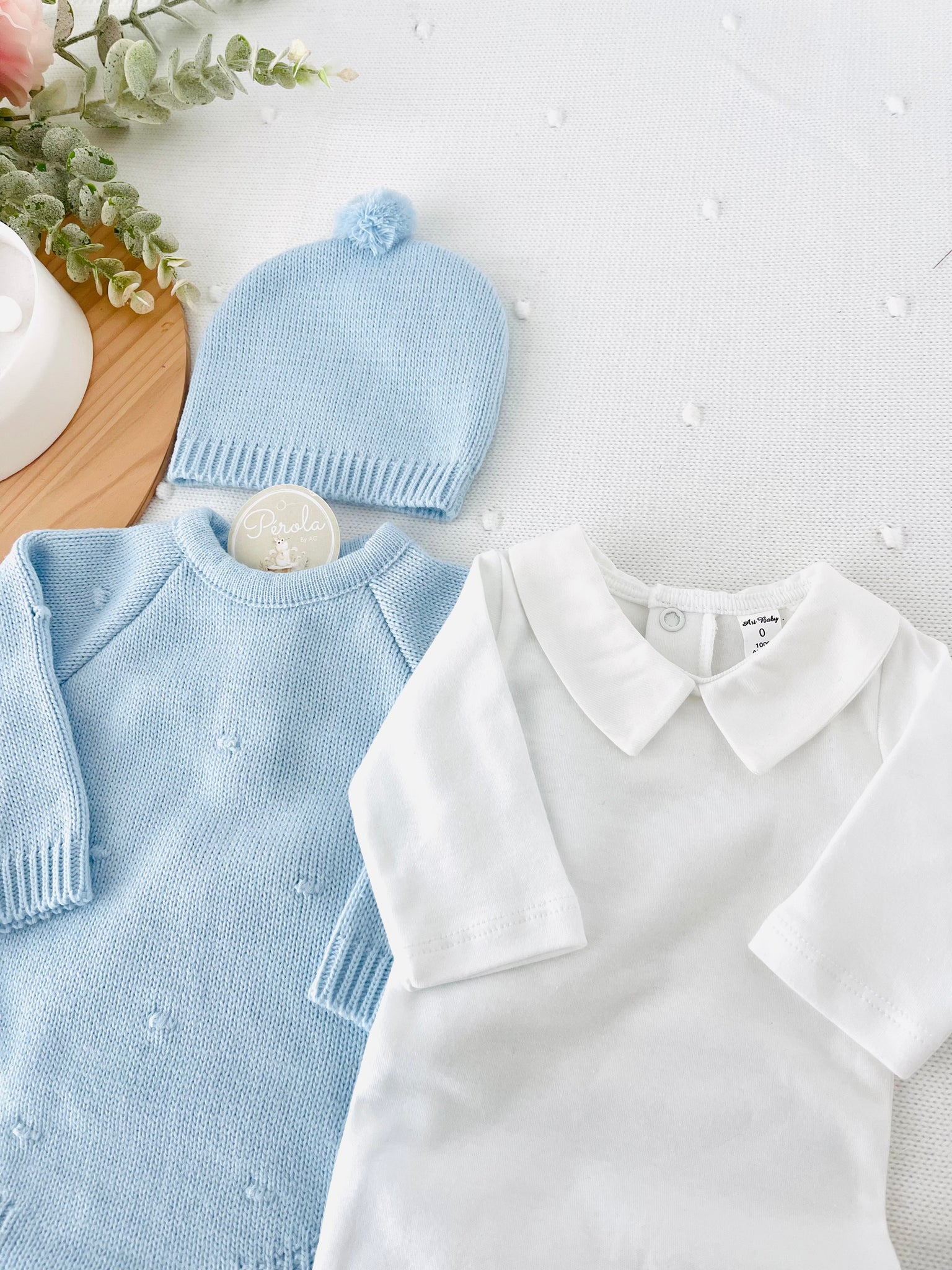Este adorável conjunto é perfeito para manter o teu bebé quentinho e elegante. Confecionado em malha extremamente suave ao toque, proporciona o máximo conforto para a pele delicada do bebé.