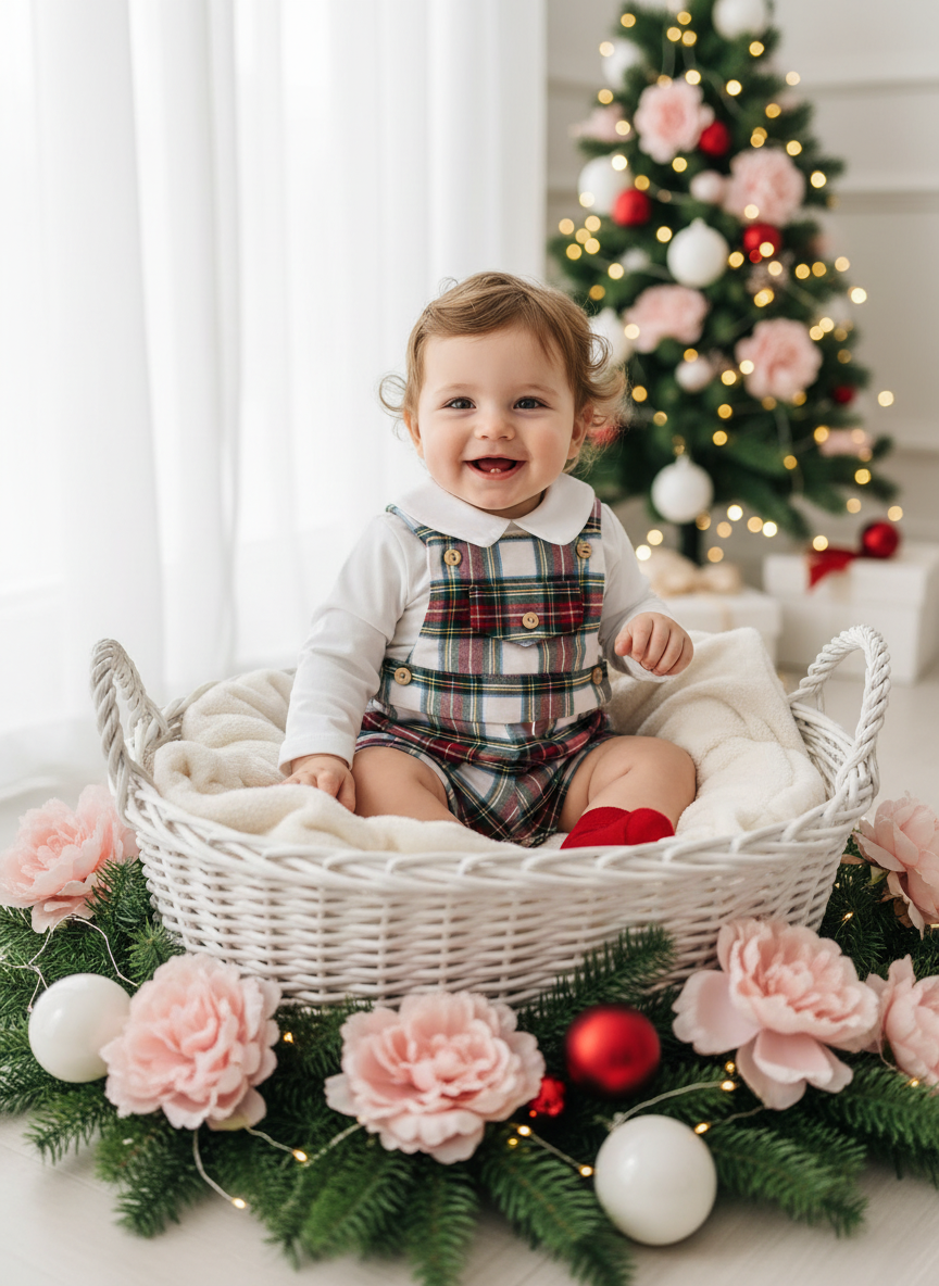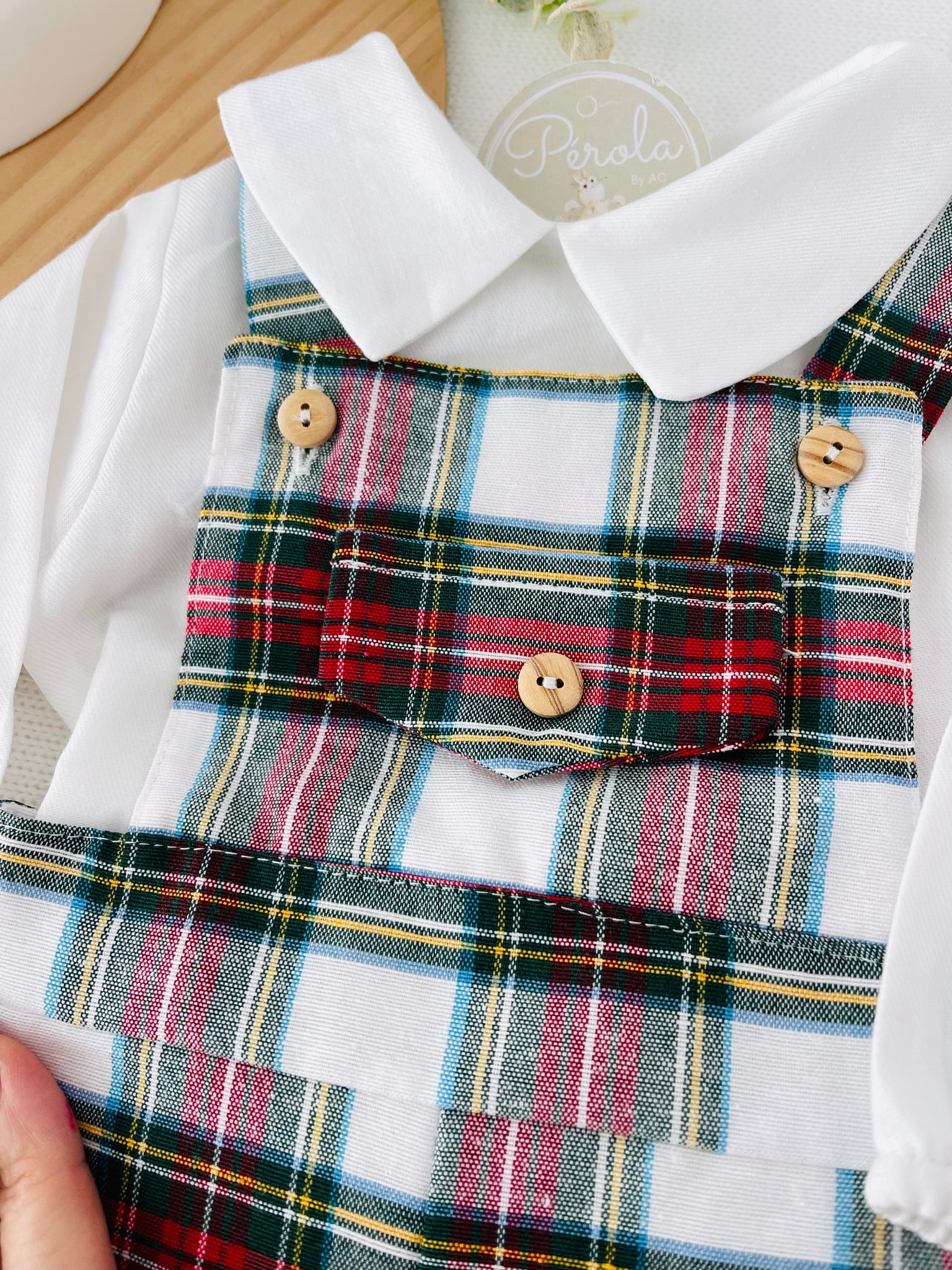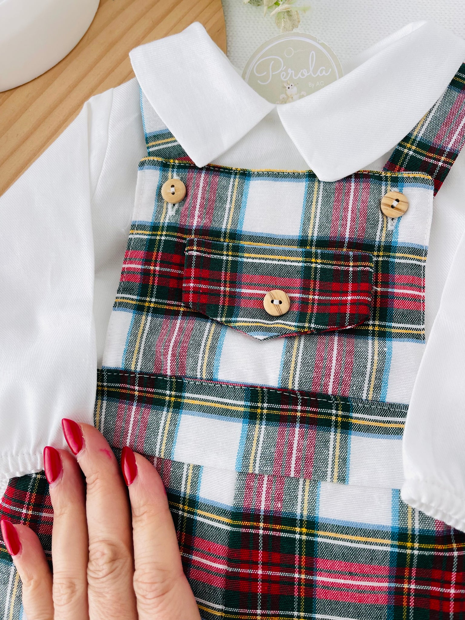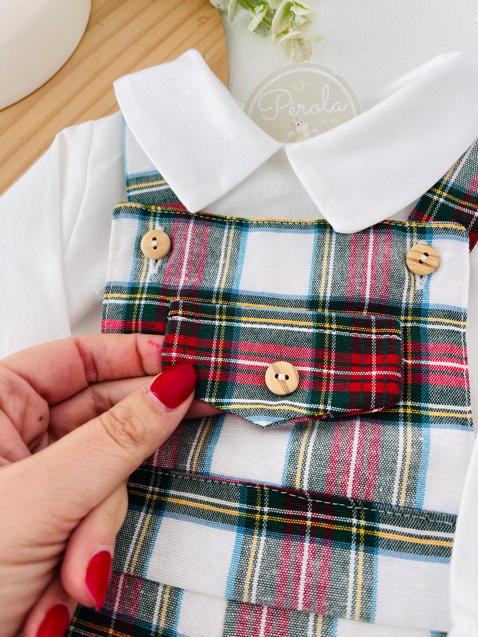 Celebre a época mais mágica do ano com este conjunto encantador em xadrez natalício. Um padrão clássico em tons de vermelho, verde, branco e amarelo que captura perfeitamente o espírito festivo.