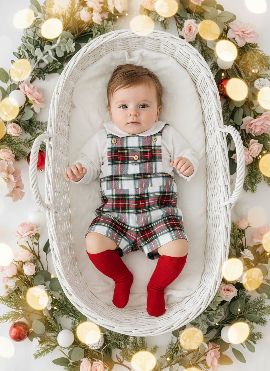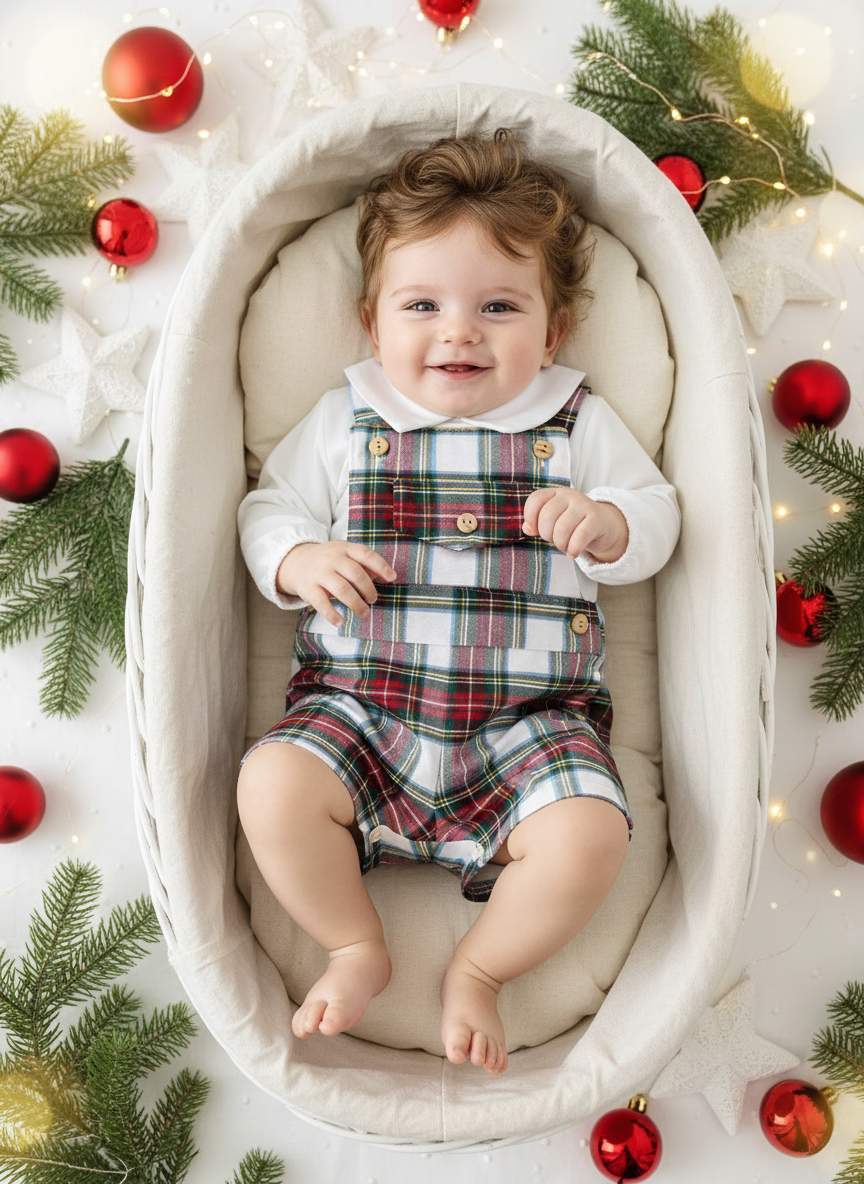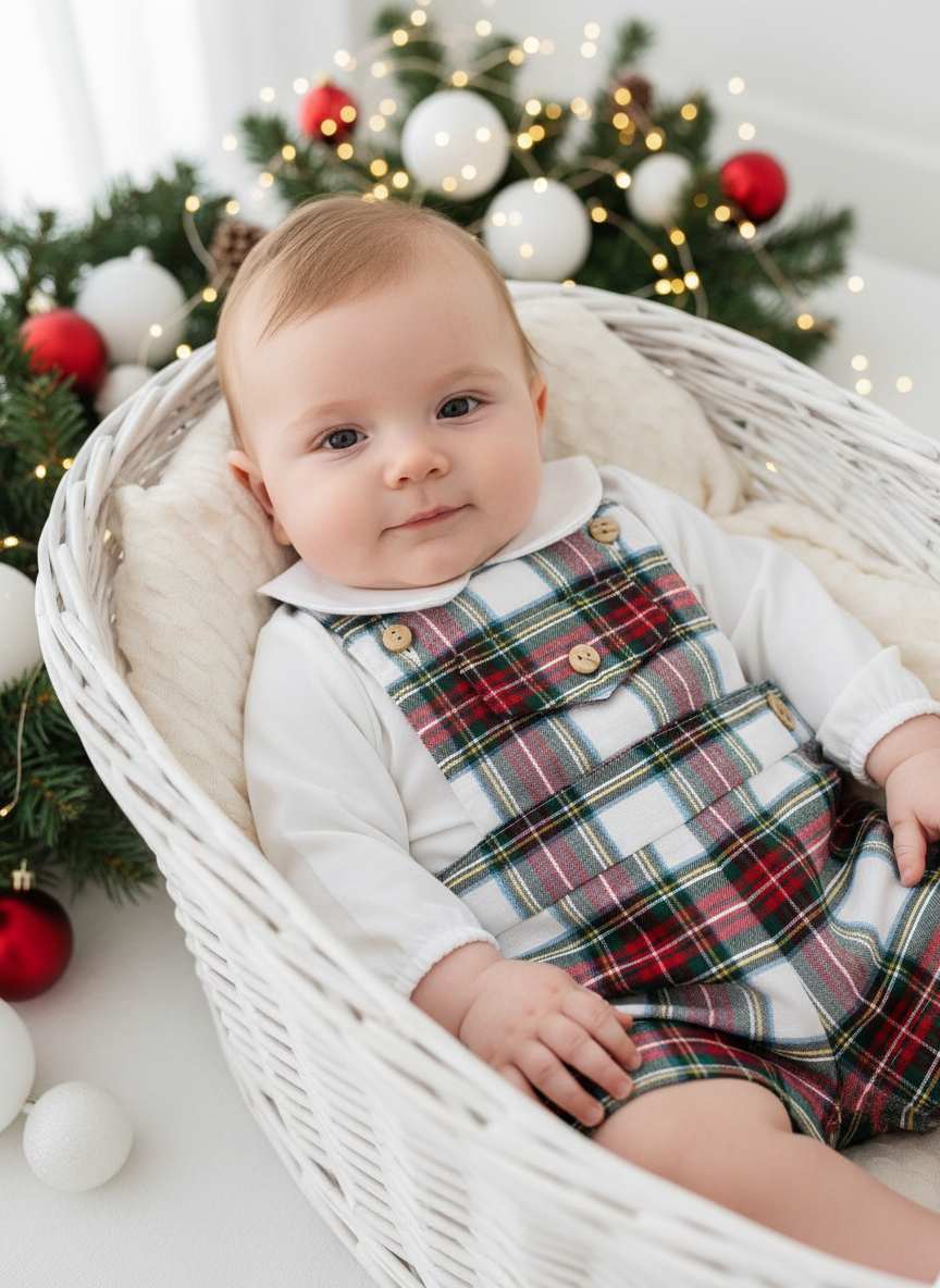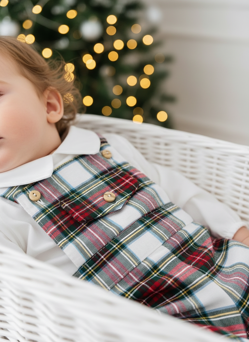 Celebre a época mais mágica do ano com este conjunto encantador em xadrez natalício. Um padrão clássico em tons de vermelho, verde, branco e amarelo que captura perfeitamente o espírito festivo.