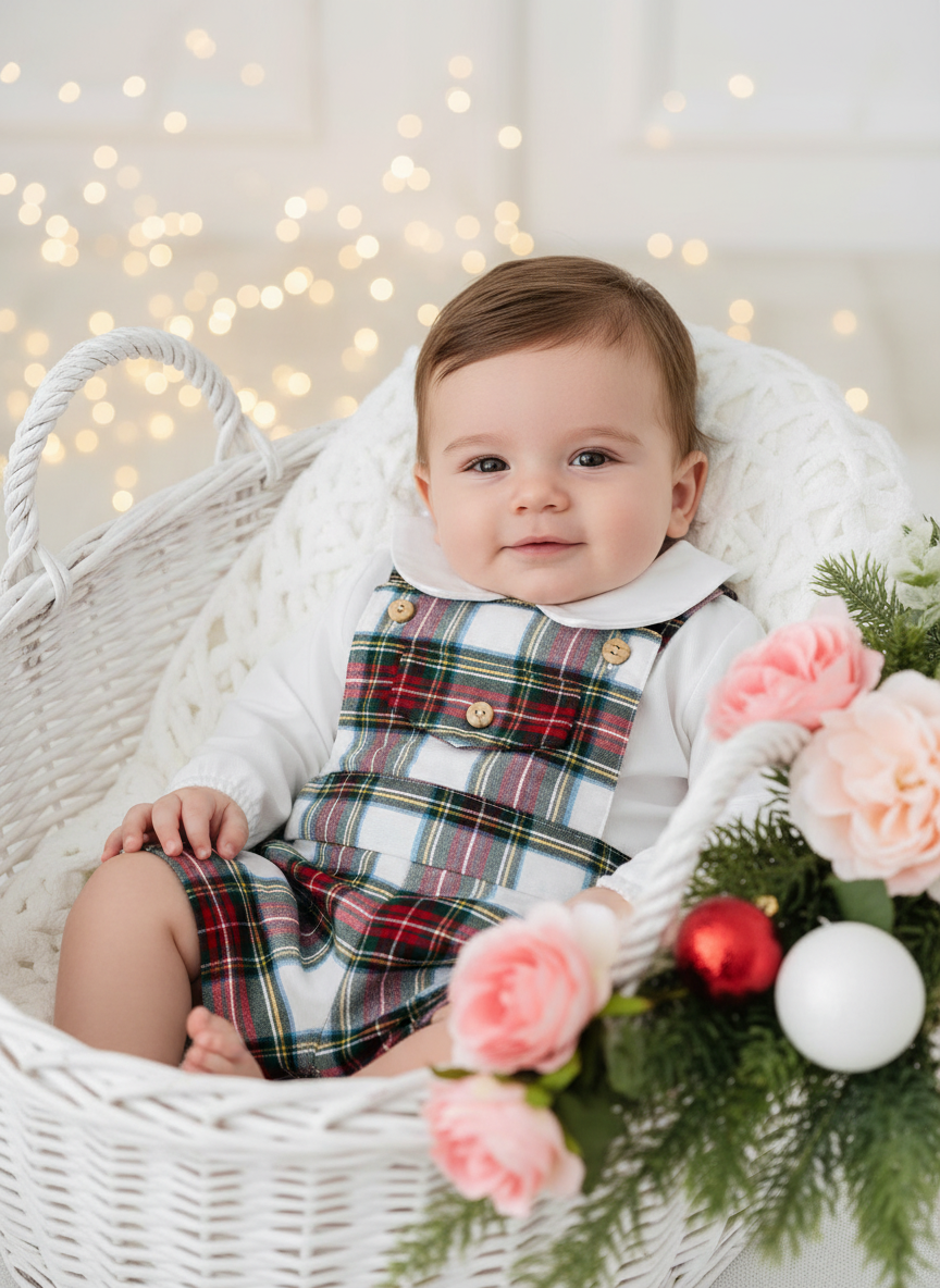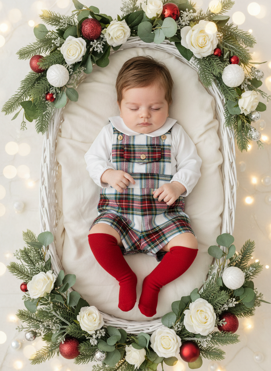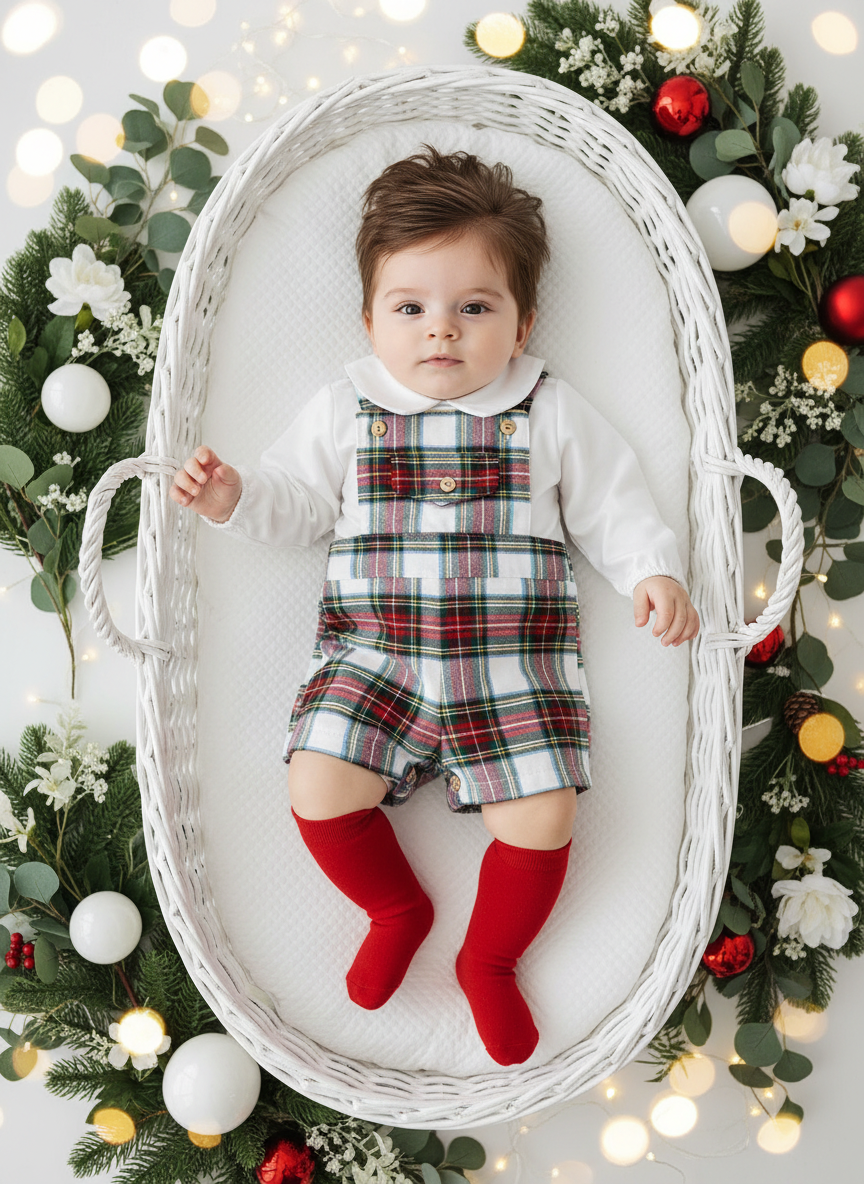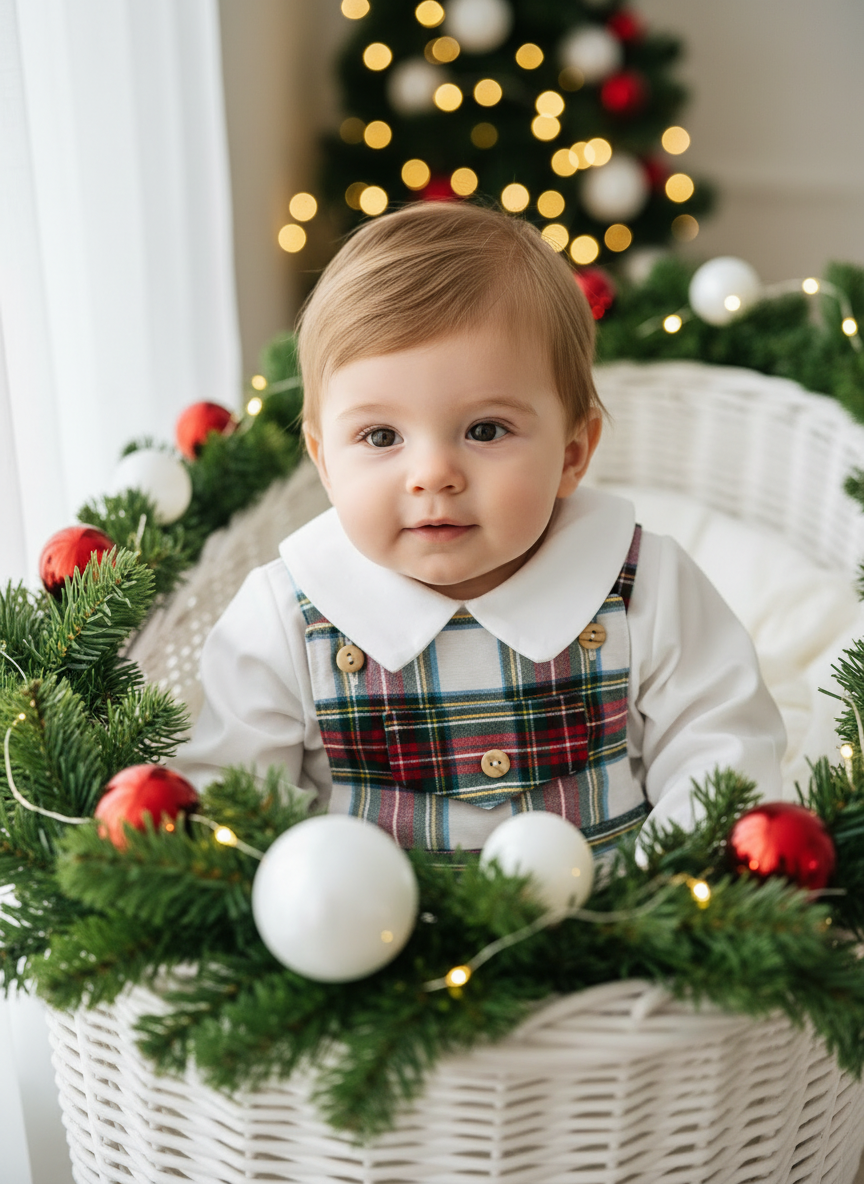 Celebre a época mais mágica do ano com este conjunto encantador em xadrez natalício. Um padrão clássico em tons de vermelho, verde, branco e amarelo que captura perfeitamente o espírito festivo.