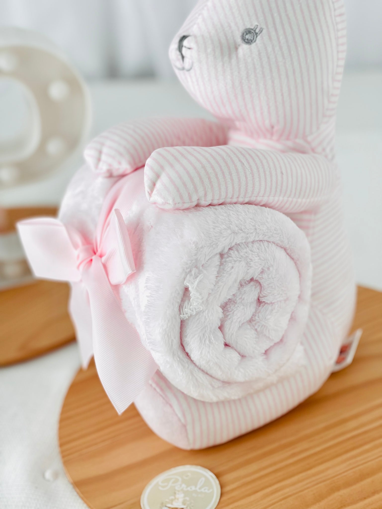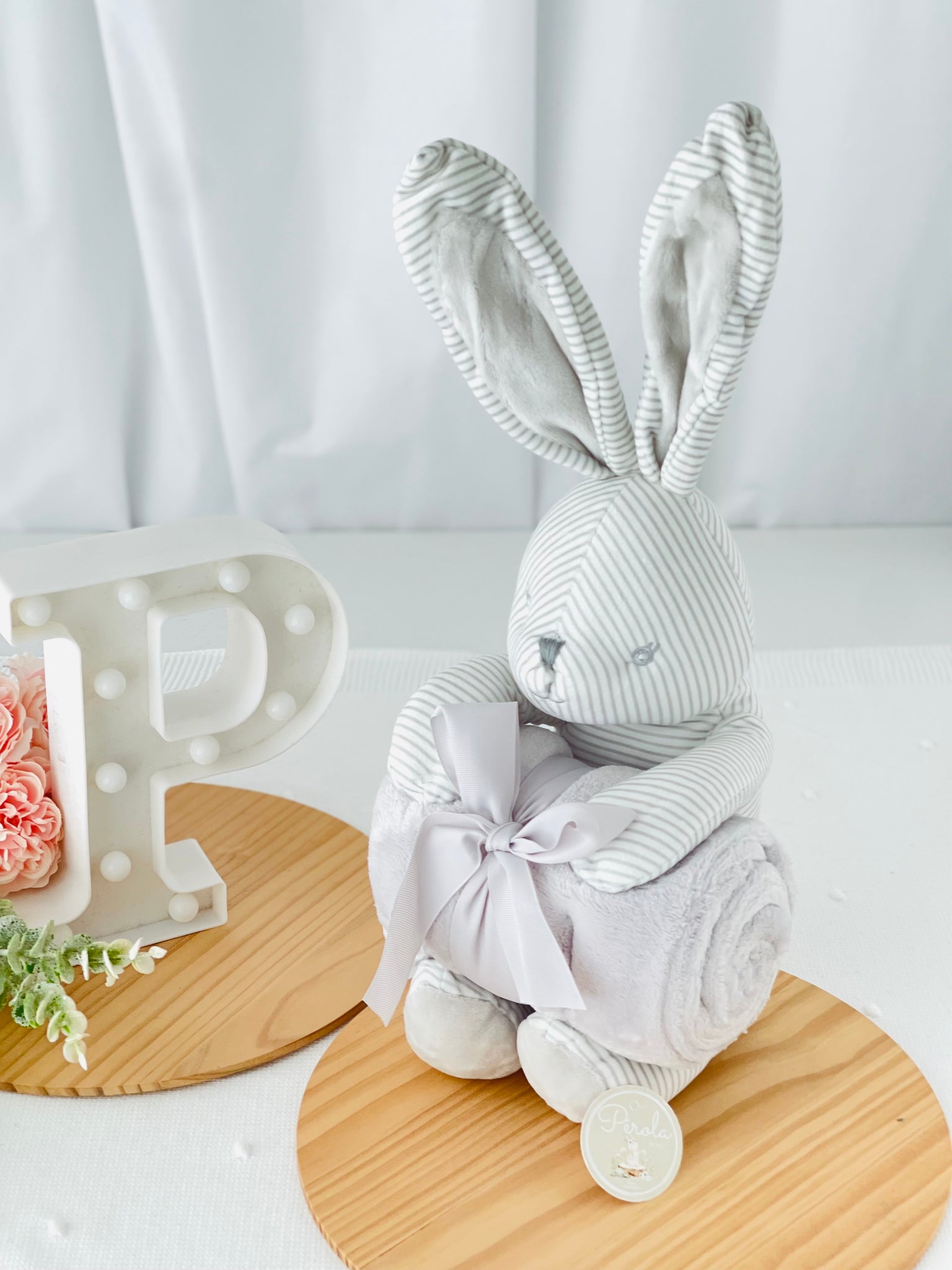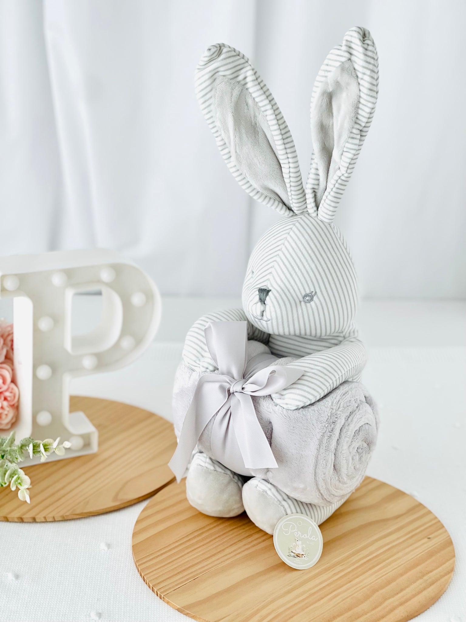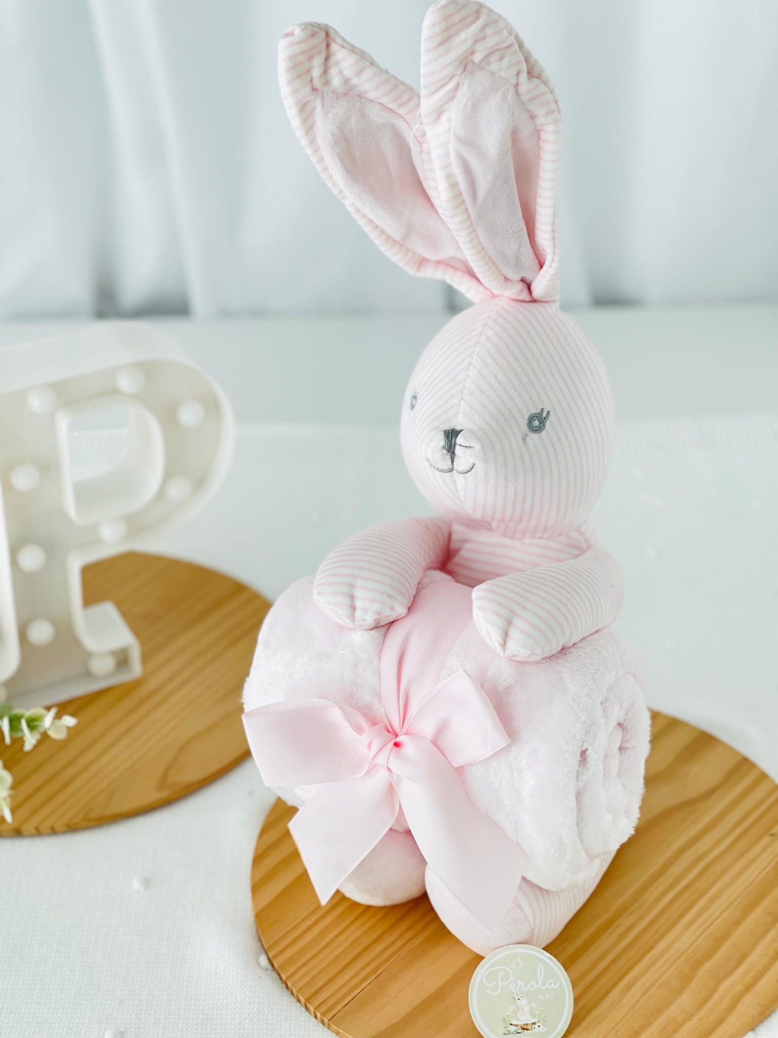 Este conjunto encantador de peluche coelhinho e manta polar é o presente perfeito para celebrar a chegada de um novo bebé ou surpreender uma futura mamã.
