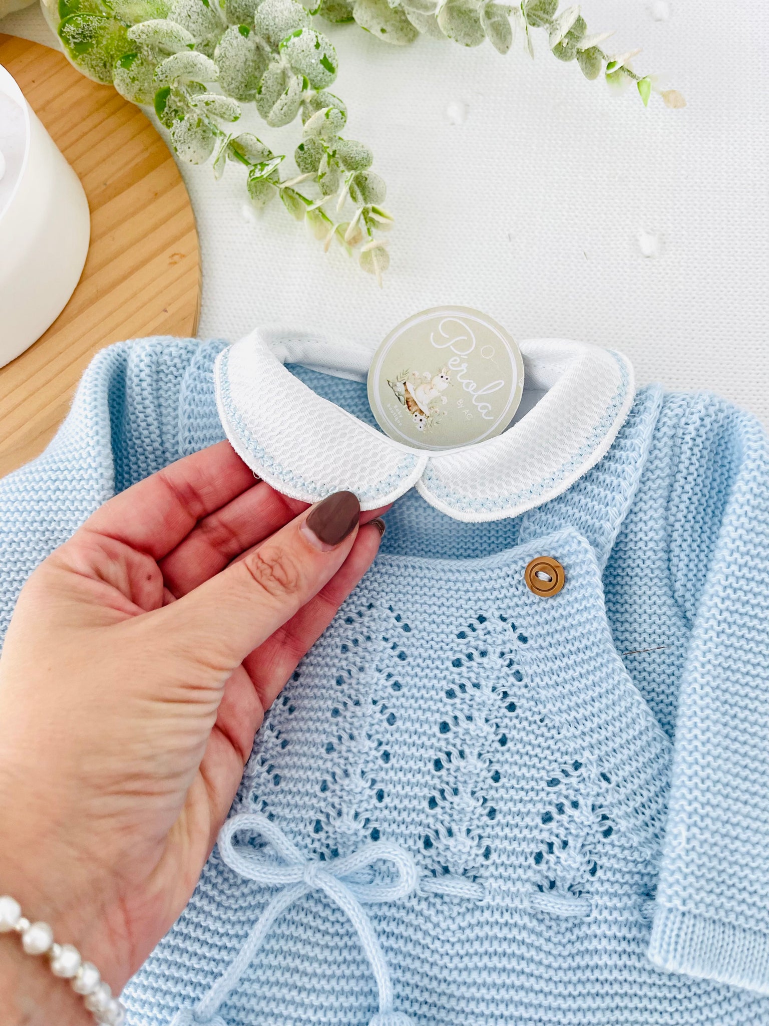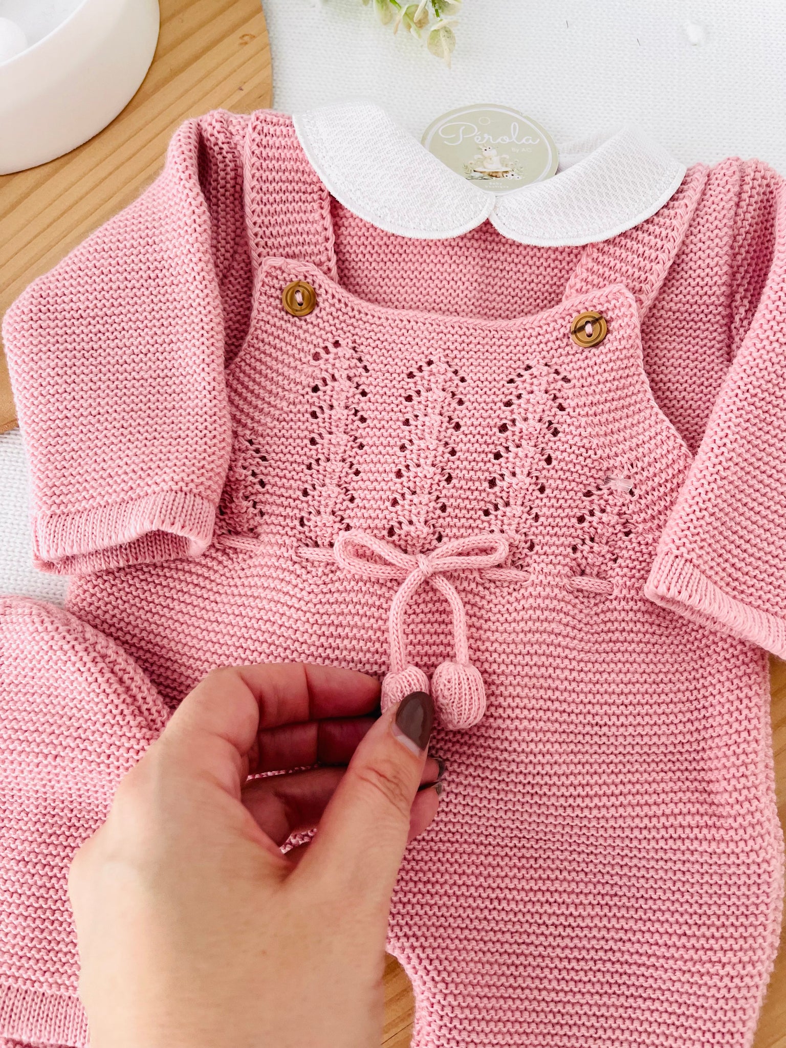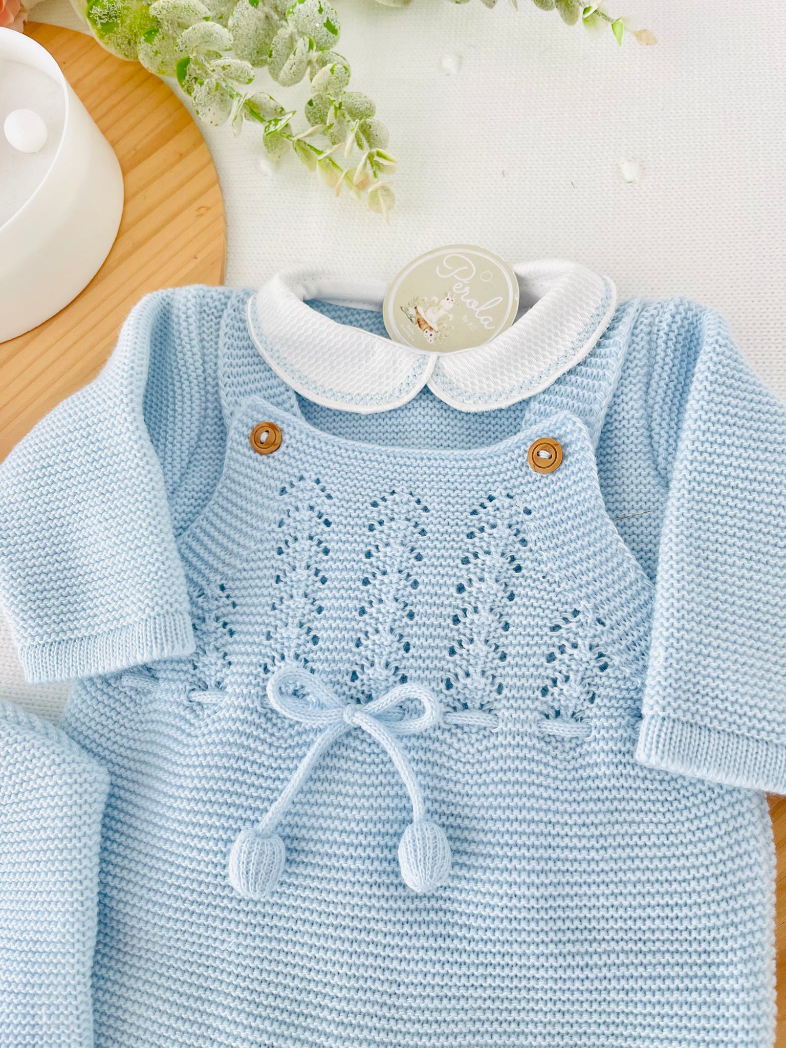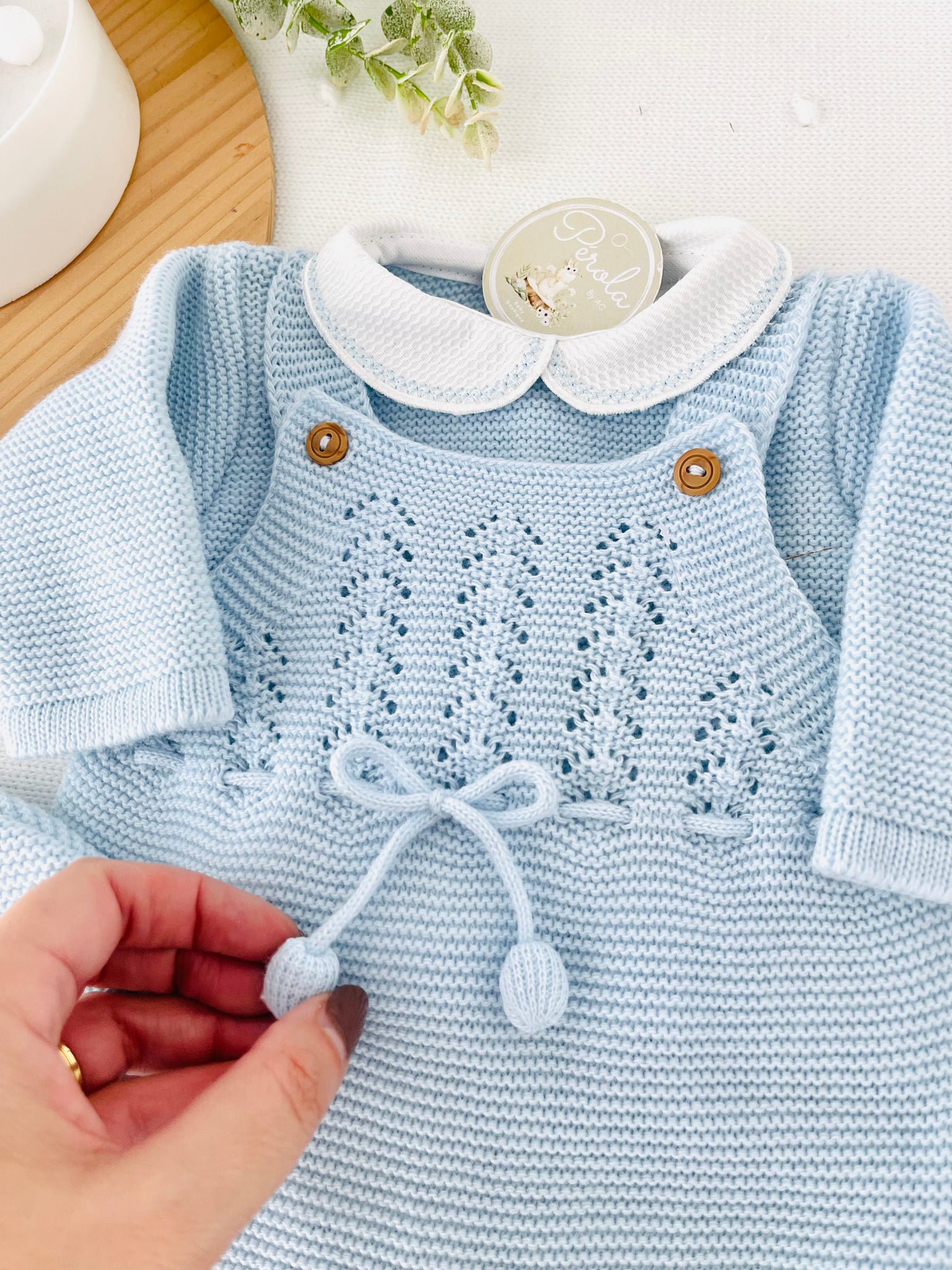 Celebre a chegada do seu bebé com este conjunto encantador de 3 peças em tricot de alta qualidade: