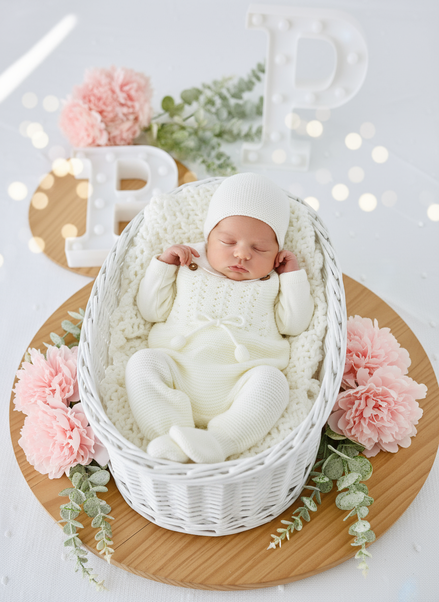 Conjunto de Saída de Maternidade em Tricot - Elegância Atemporal